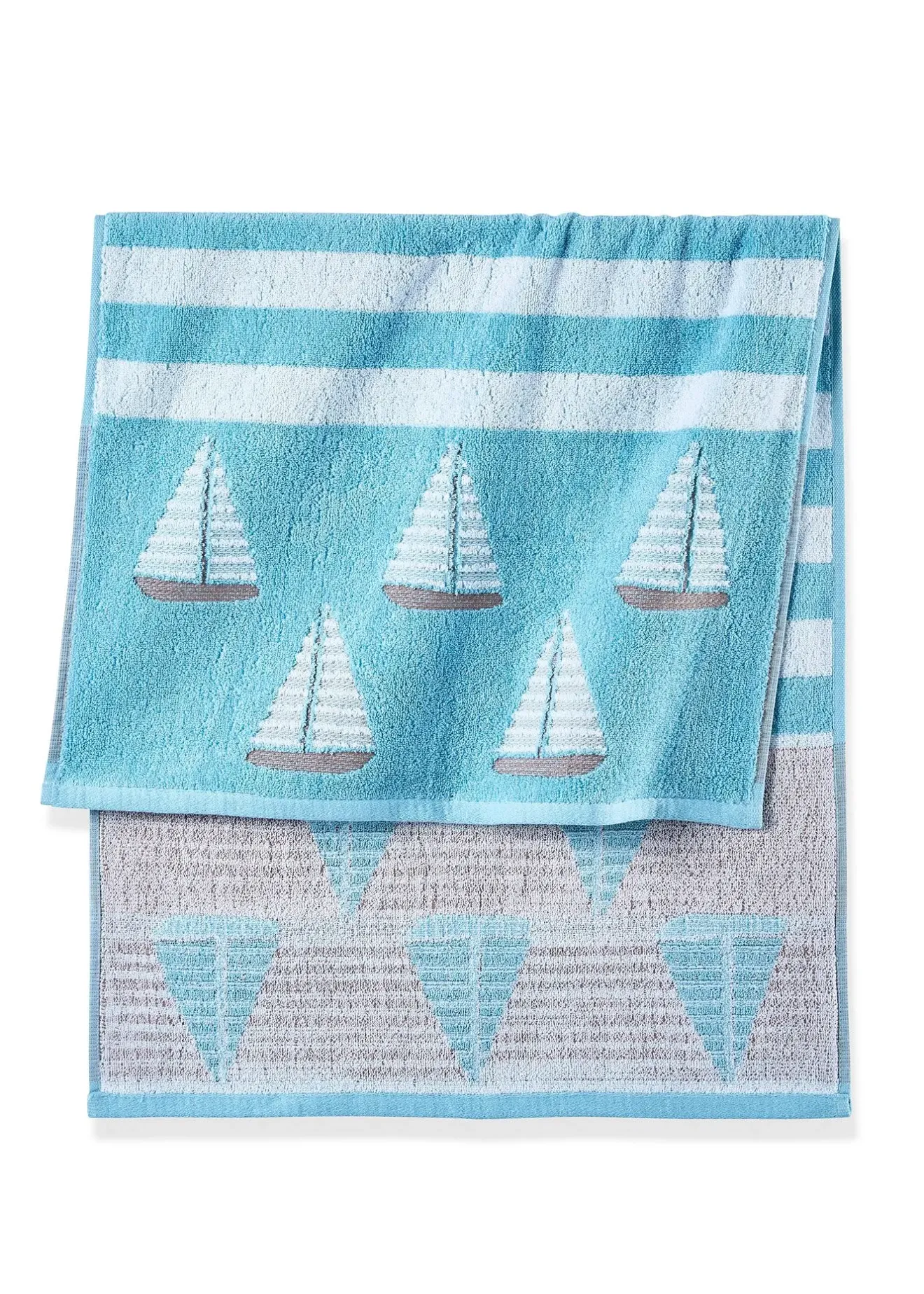 Serviette de toilette avec un motif bateau, lavable à 60°C, éponge douce et absorbante.