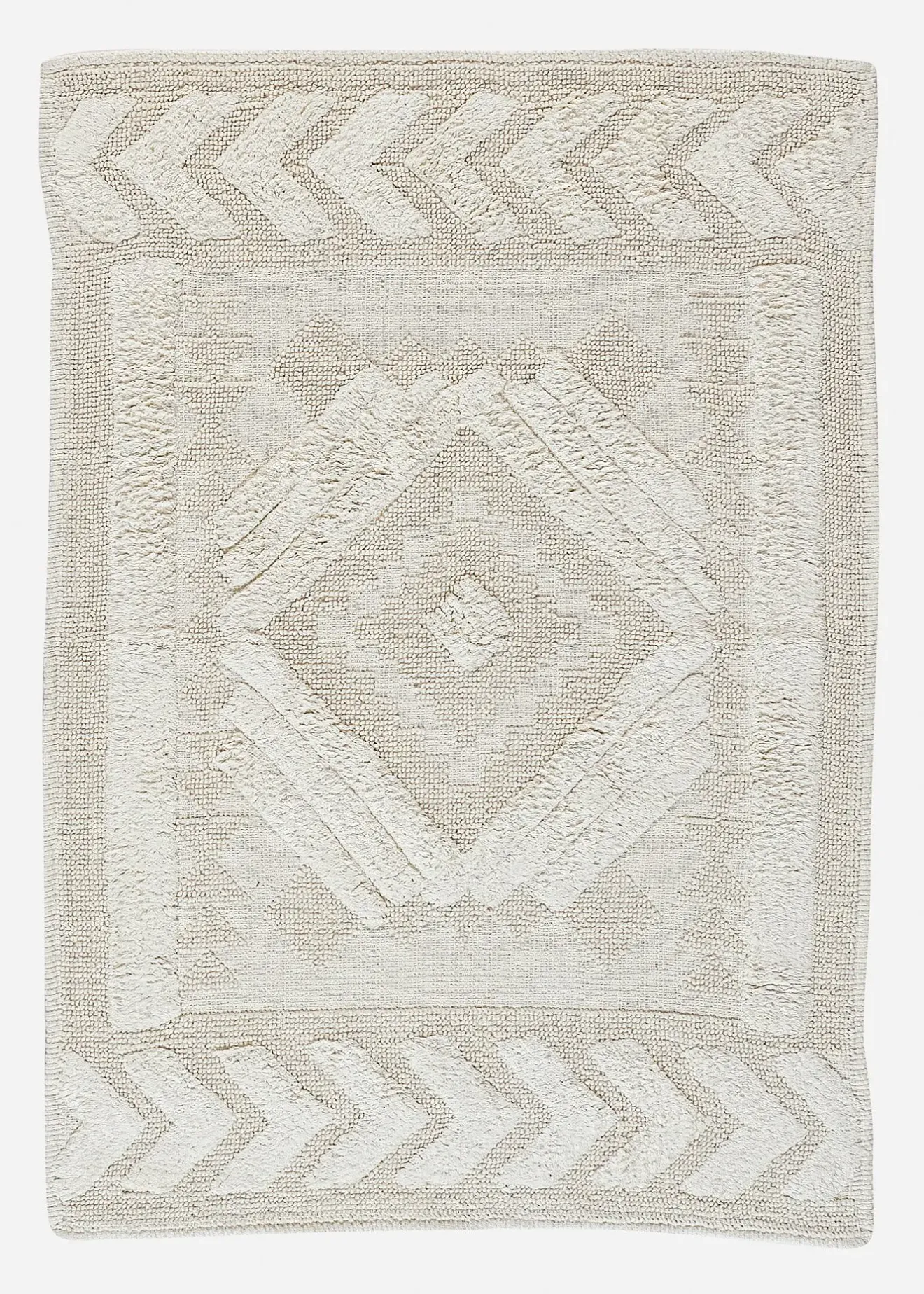 Tapis de bain tufté, lavable à 30°C, dessous antidérapant, convient au chauffage par le sol.