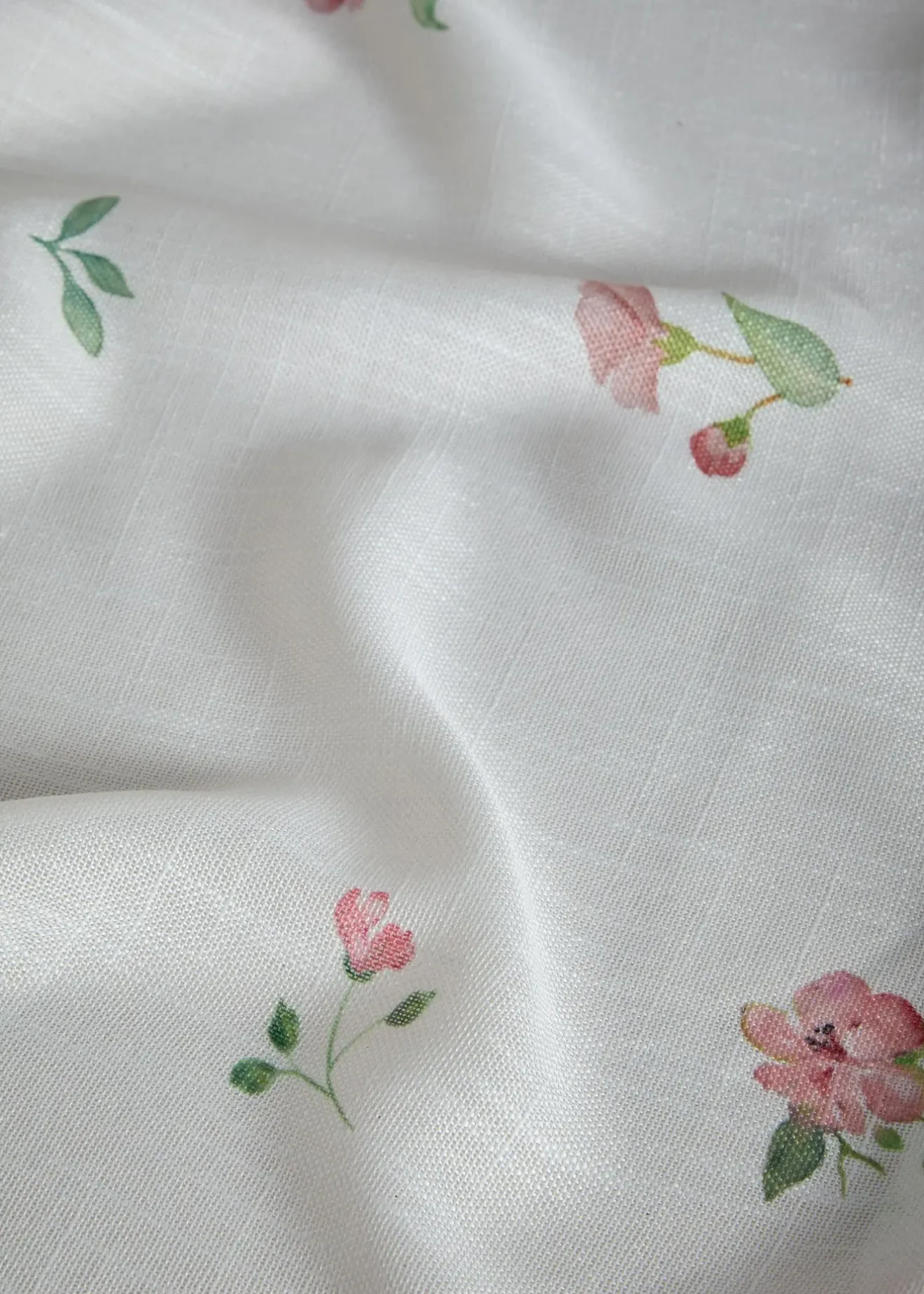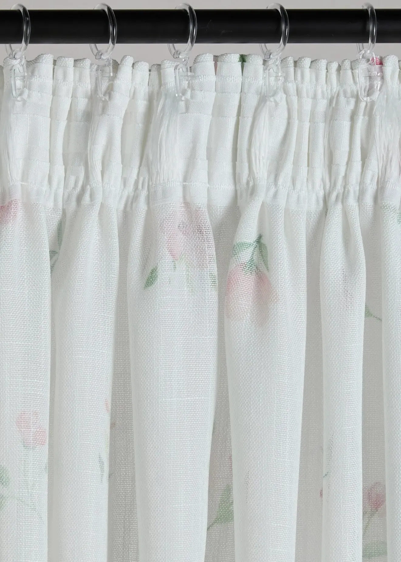 Rideau élégant en tissu légèrement texturé. Orné d’un imprimé discret aux couleurs printanières.