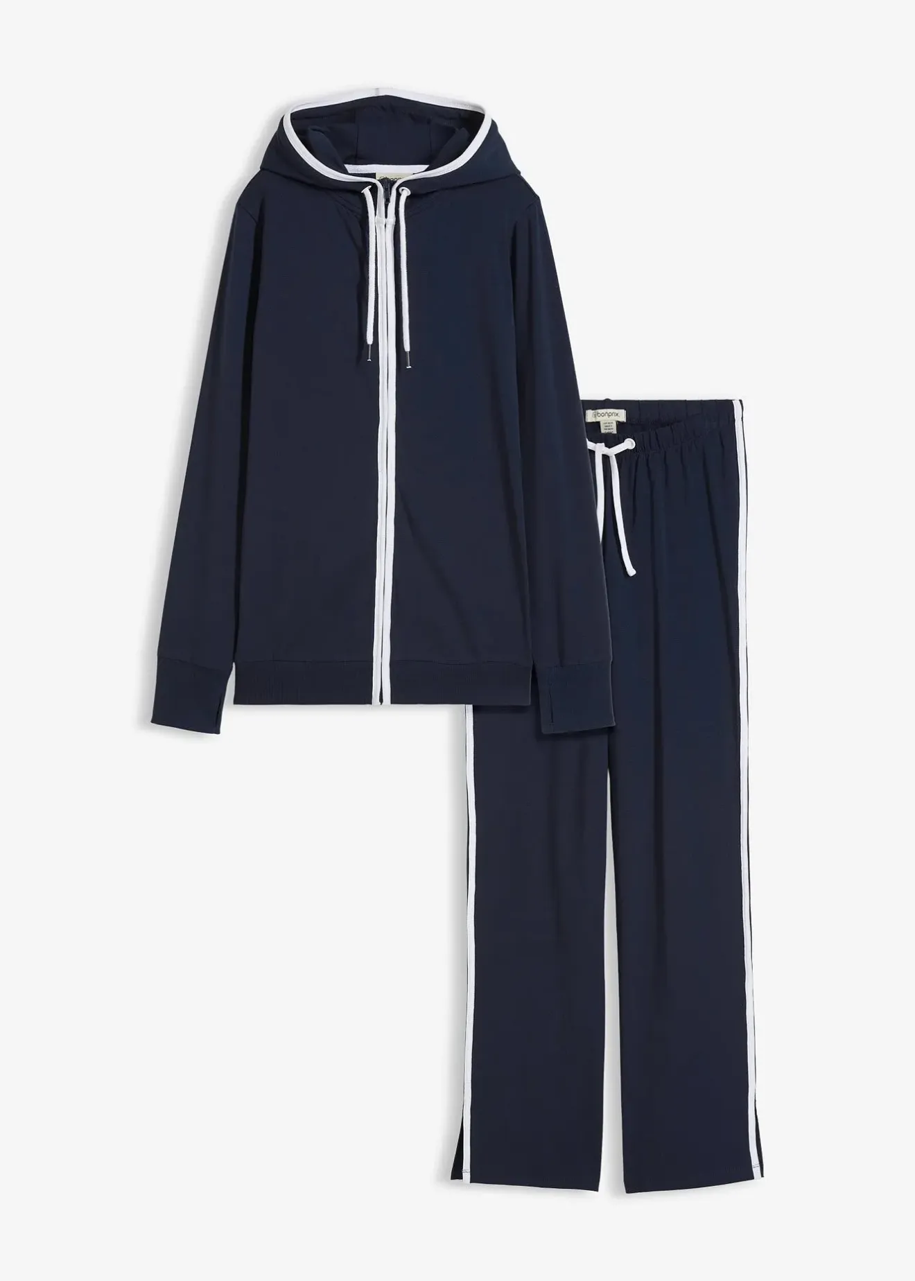 Survêtement composé d’un pantalon de jogging et d’une veste, pantalon avec rayures sur les côtés, finition mitaines, poches latérales, long. env. 147 cm, lavage machine.