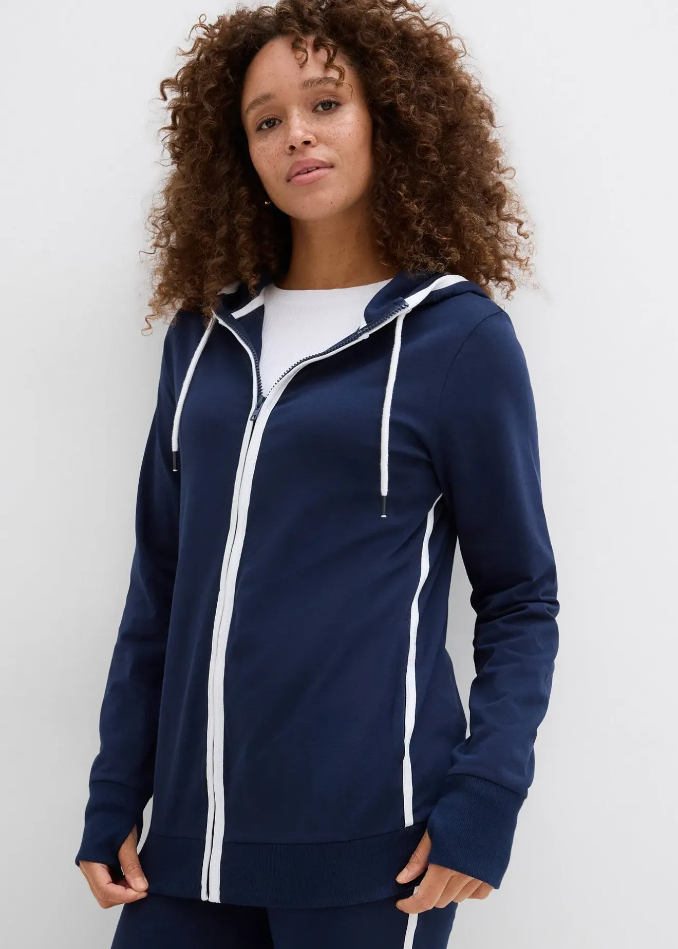 Survêtement confortable en coton (ens. 2 pces), comprenant un sweat zippé et un pantalon de jogging, coupe droite