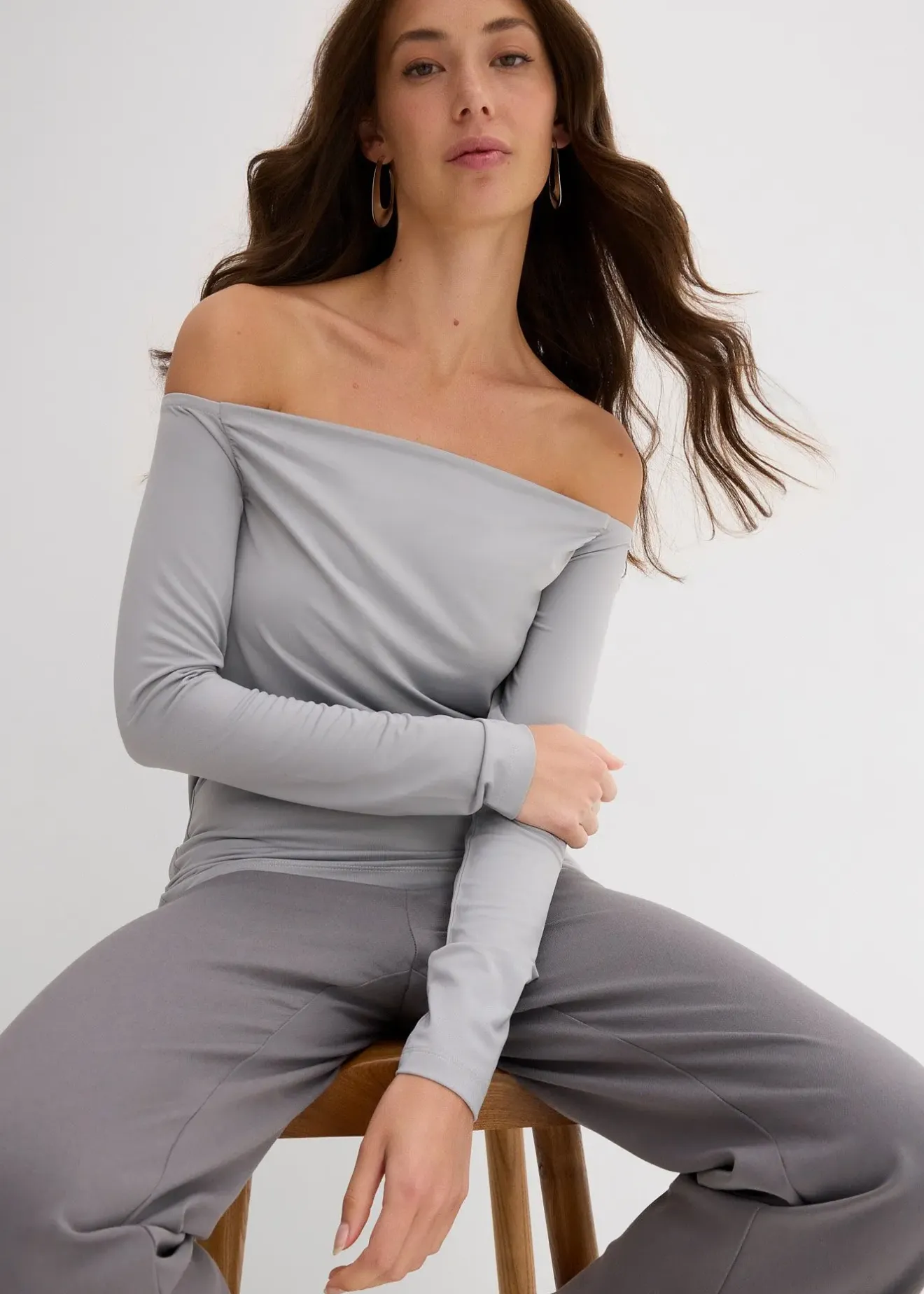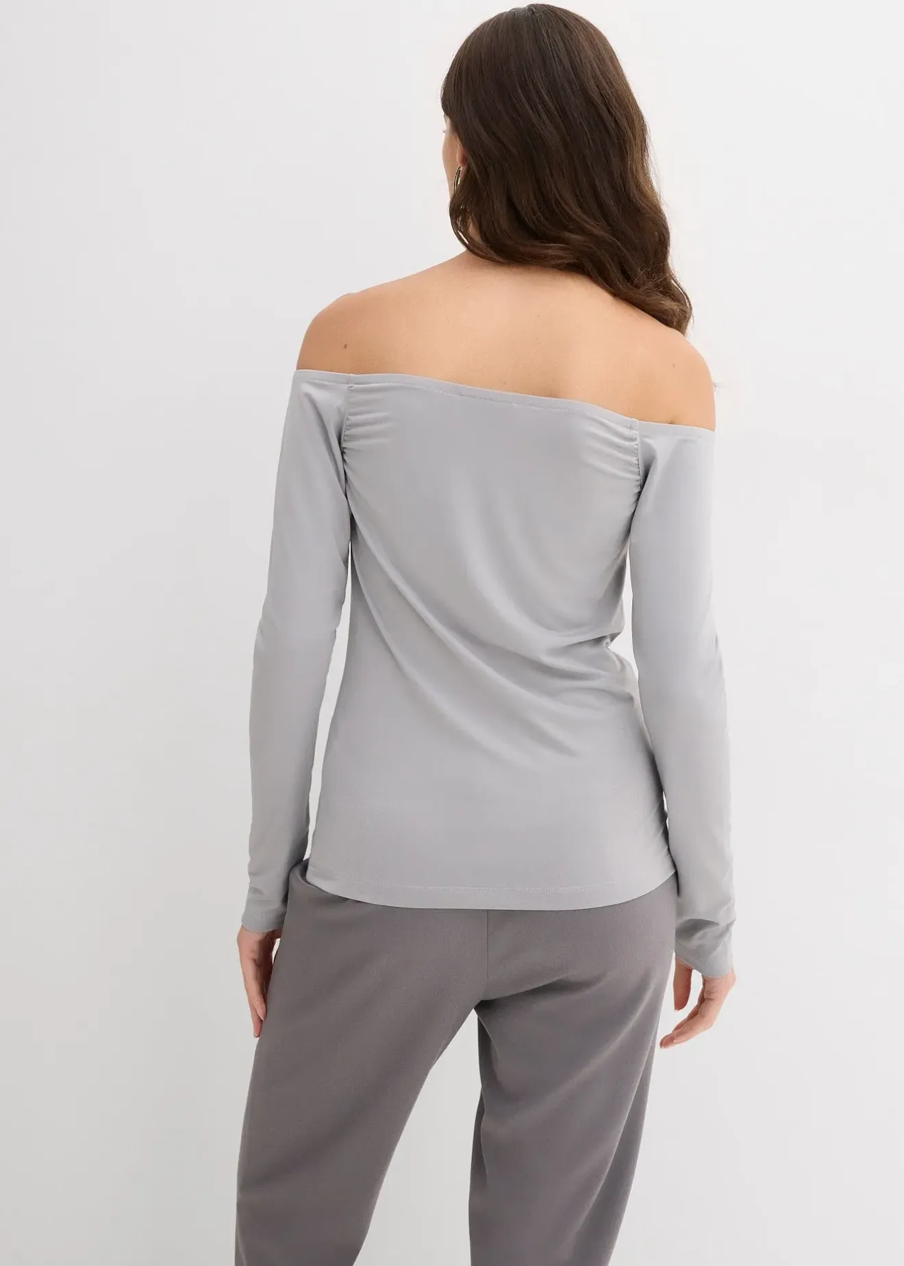 T-shirt manches longues ajusté à col Bardot