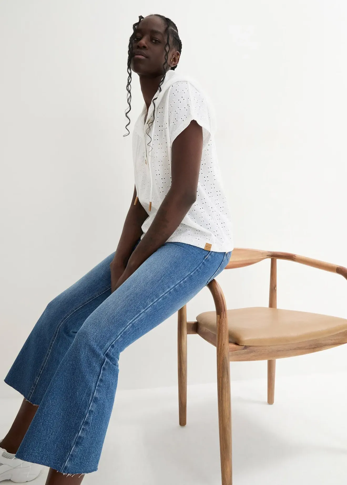 T-shirt col Henley ample à capuche
