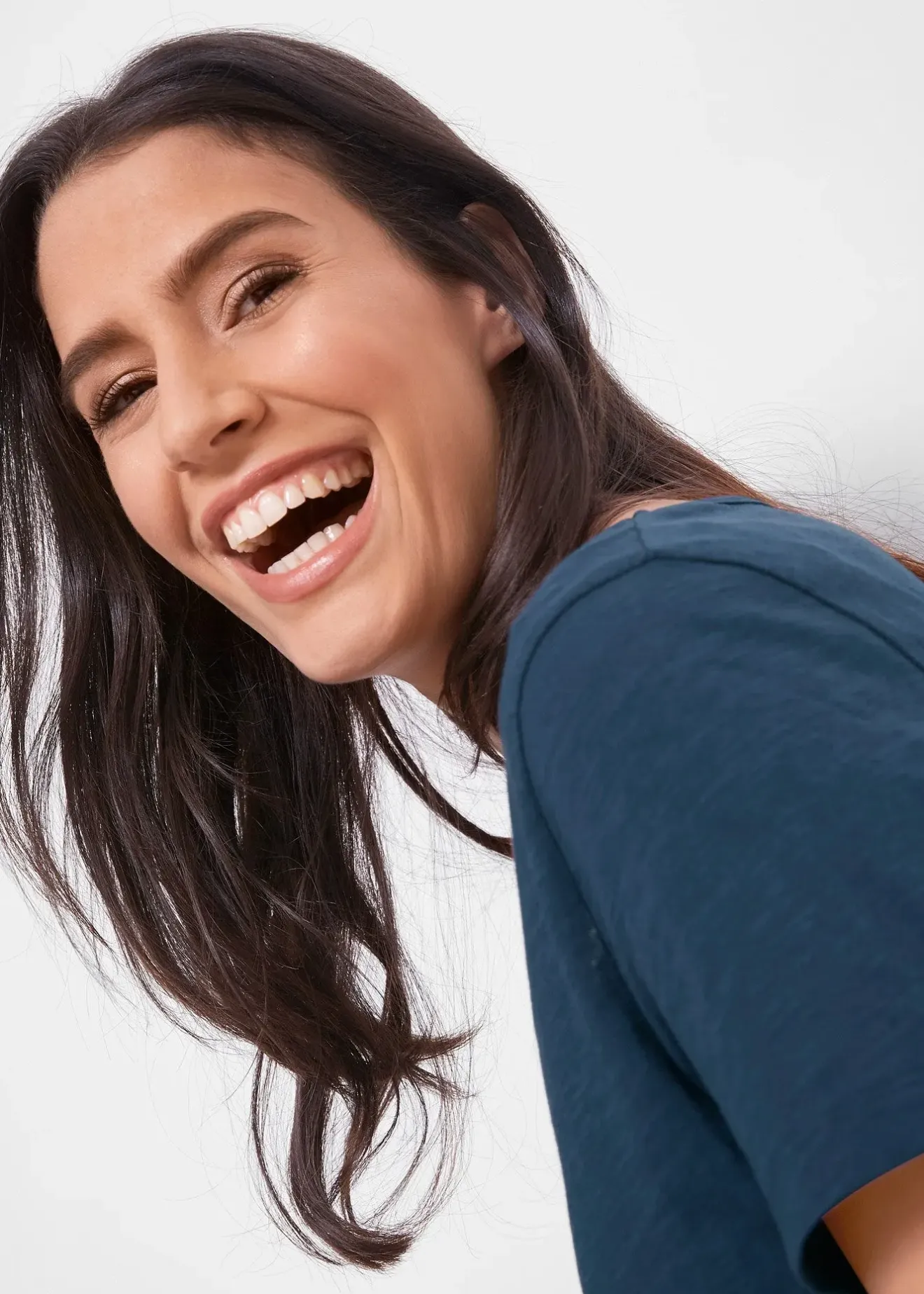 T-shirt en fil flammé, manches courtes et col rond, imprimé décoratif