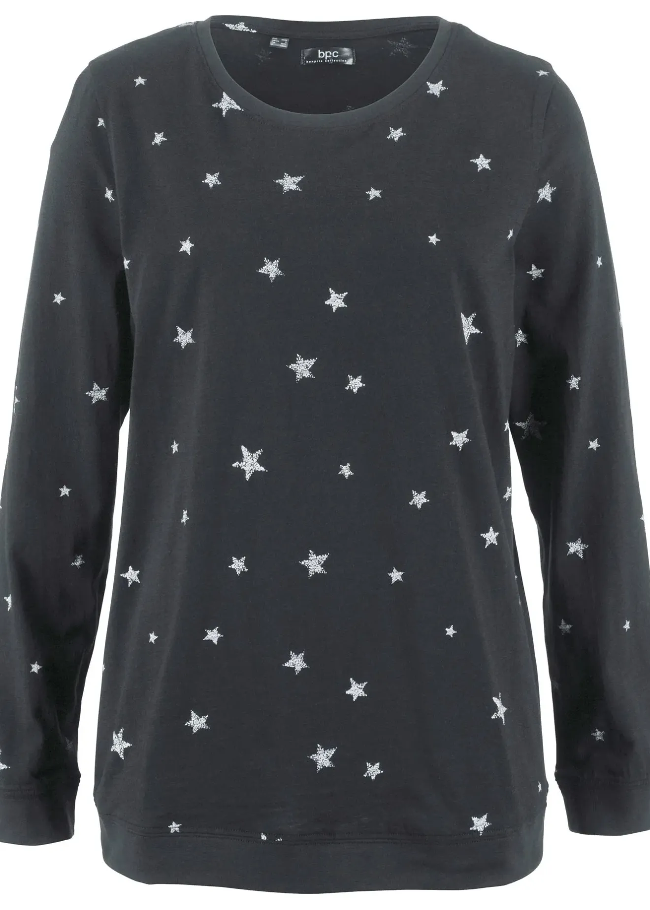 T-shirt manches longues de bpc, col rond, coton agréable au toucher et imprimé attrayant. Bords-côtes aux manches et à la base pour une coupe ajustée et un look sportif.