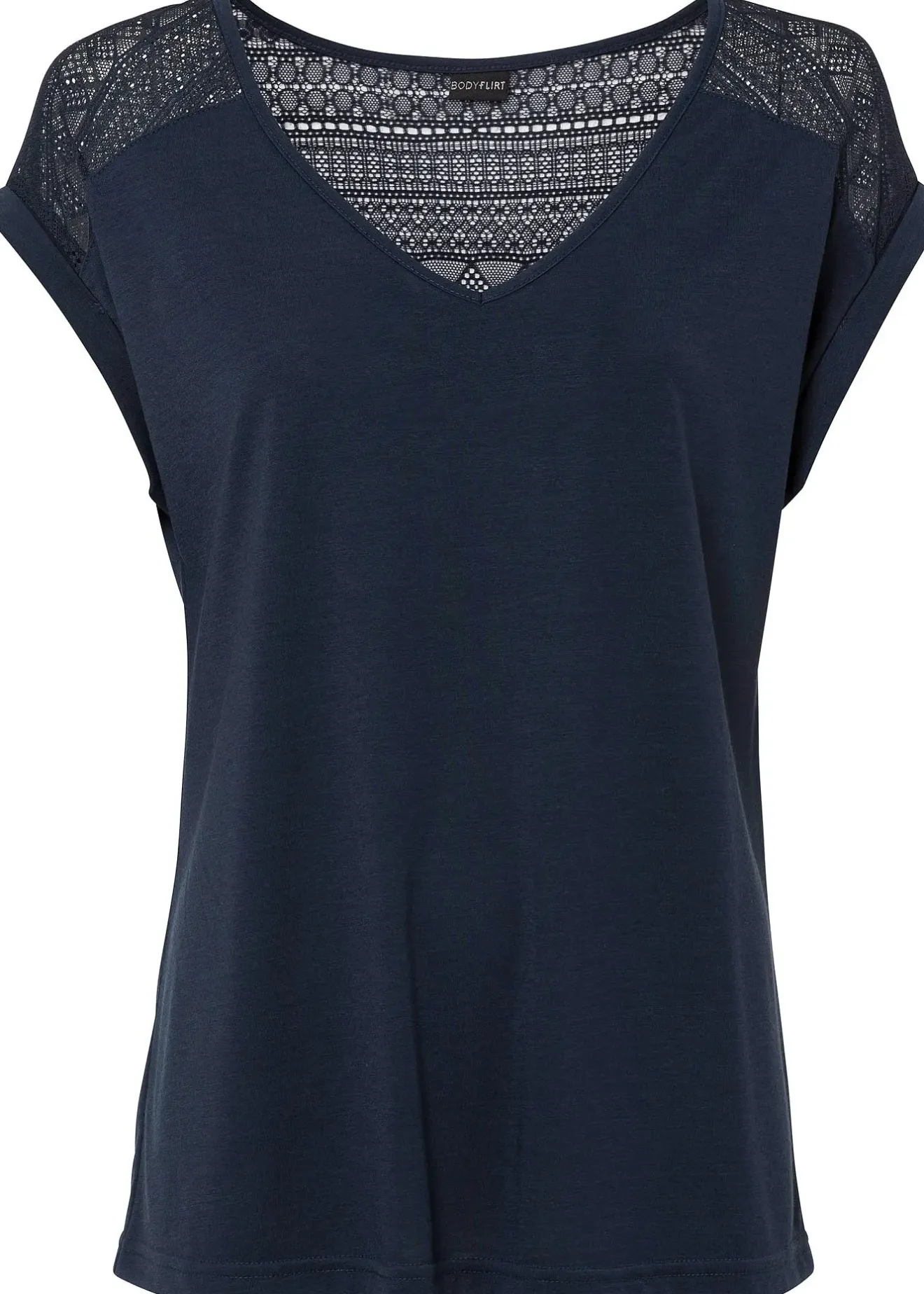 T-shirt moderne de BODYFLIRT. T-shirt agrémenté d’une dentelle de belle qualité. Long. env. 64 cm.