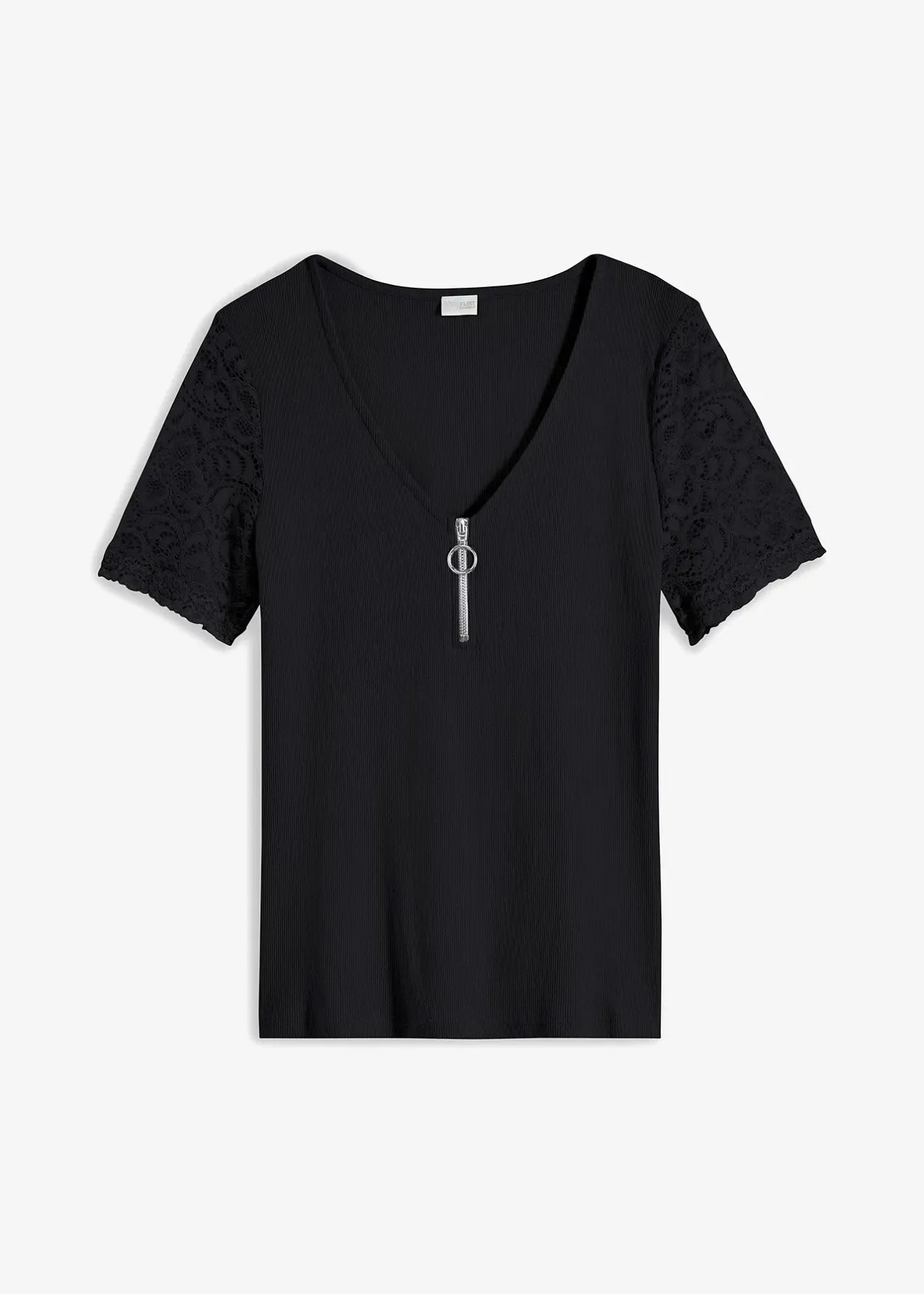 T-shirt côtelé moderne avec fermeture zippée, long. env. 64 cm.