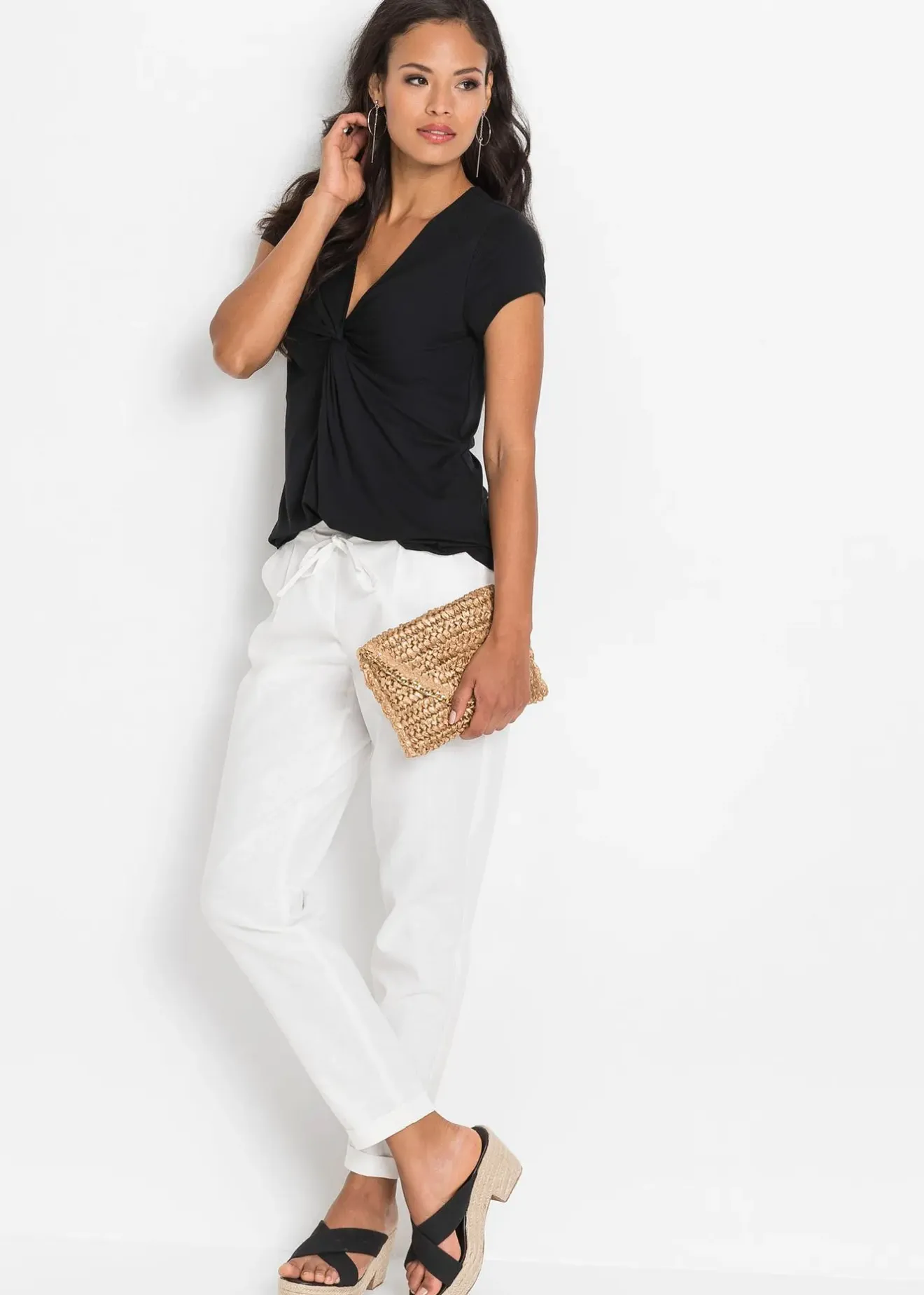 T-shirt original et flatteur de BODYFLIRT avec une encolure V à effet torsadé et fronces sur le devant. Se marie parfaitement avec un pantalon ou une jupe.