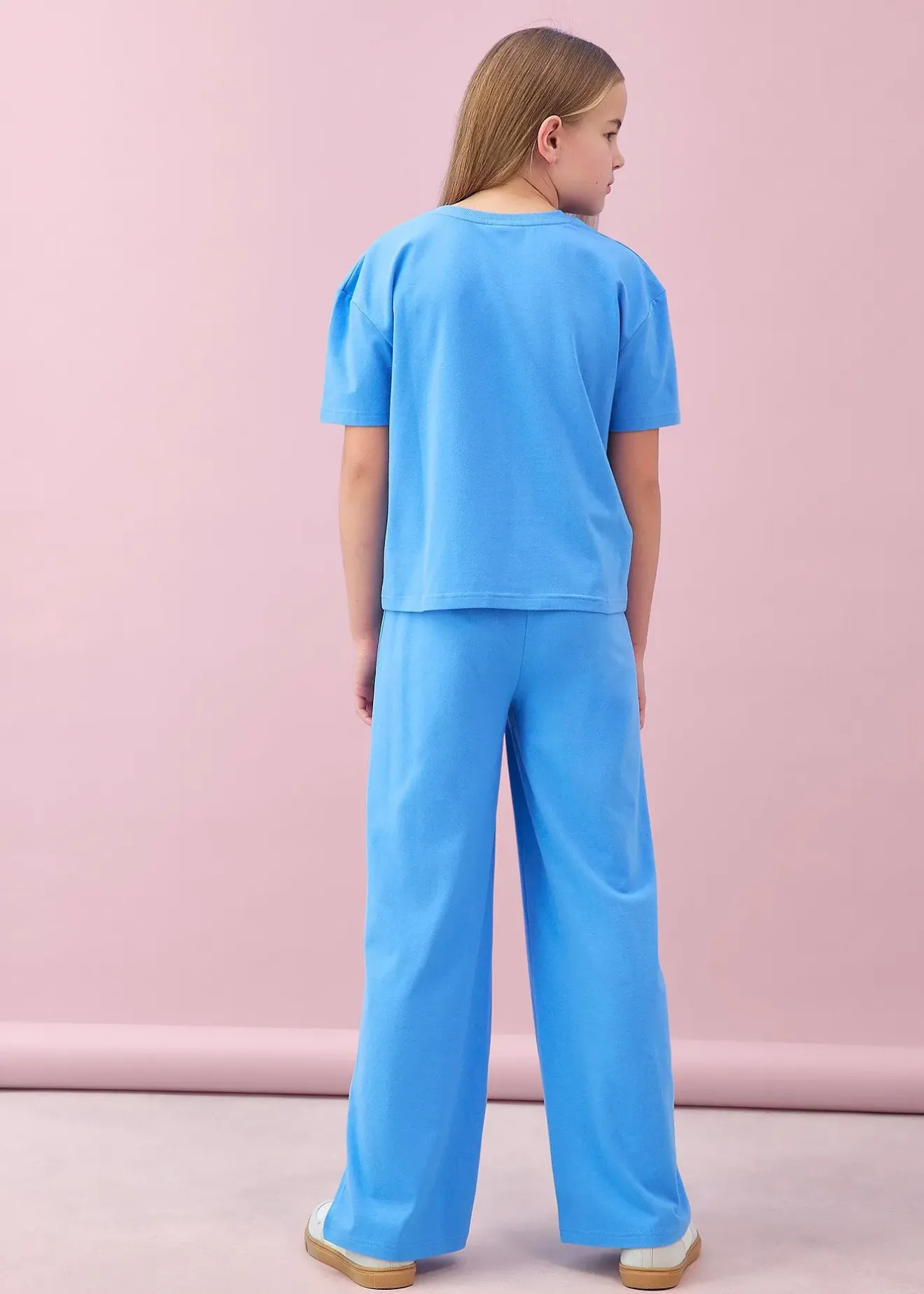 Ensemble cool avec un T-shirt ample à imprimé devant et un pantalon palazzo large et décontracté