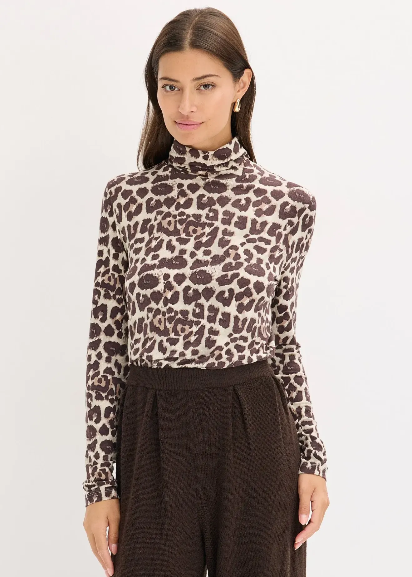 T-shirt manches longues tendance en viscose douce et extensible avec col montant