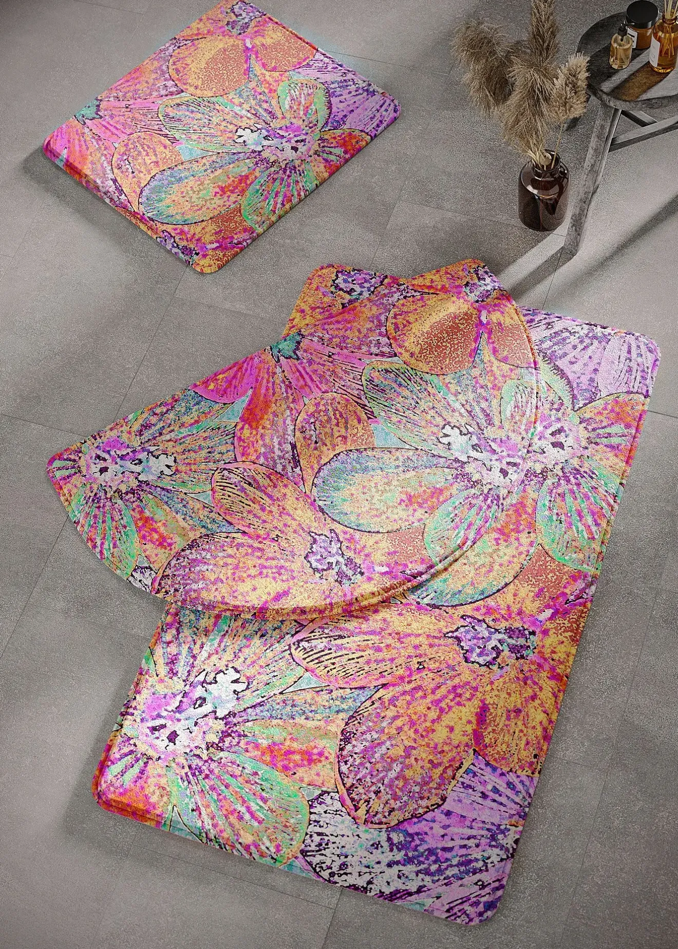 Tapis de bain imprimé, ultra-doux et extrêmement absorbant. Dessous antidérapant.