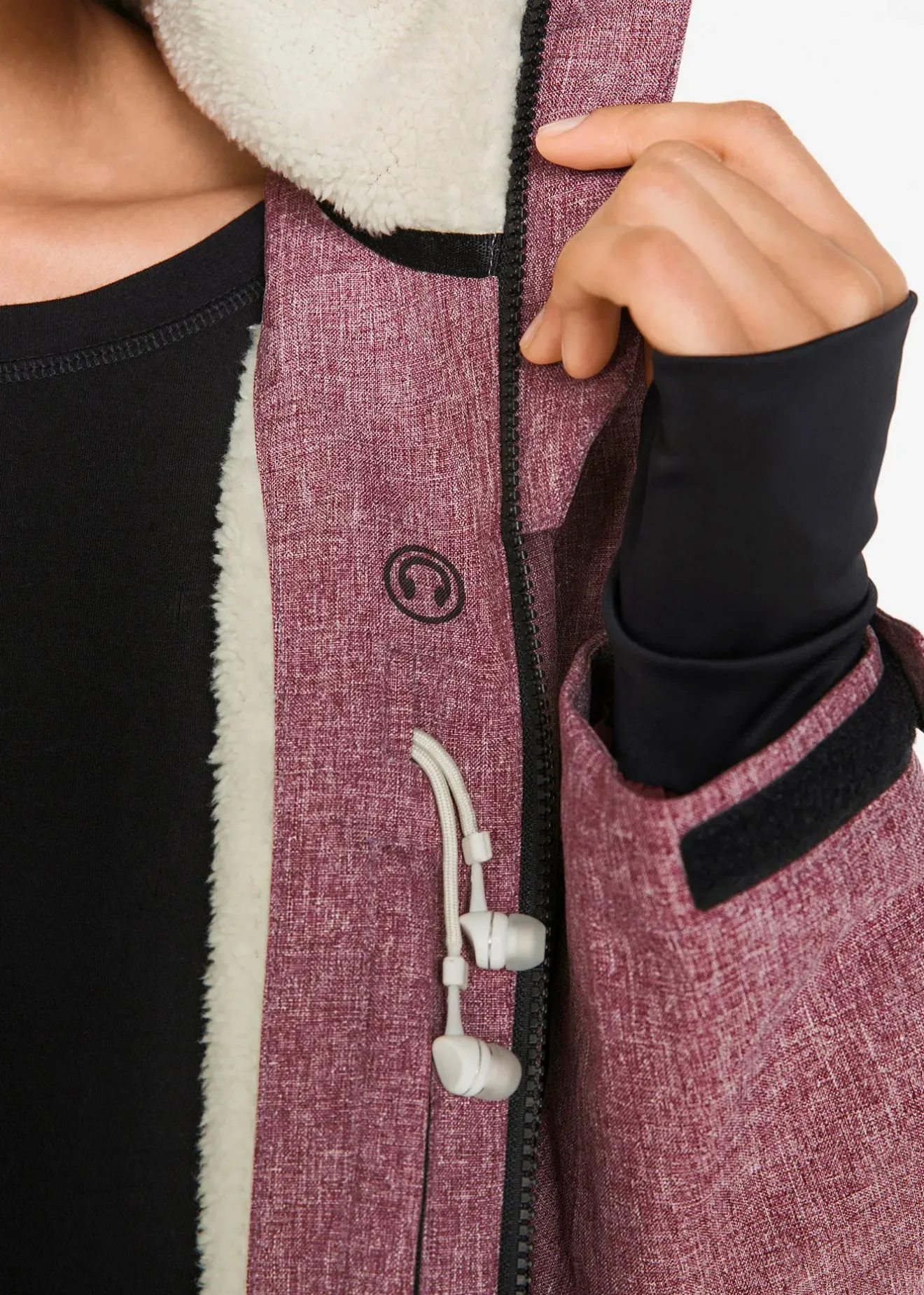 Capuche séparable, doublure en maille polaire style peluche, cordon coulissé à la base pour ajuster l’ampleur, poche intérieure avec passant pour câble d’écouteurs, plus longue au dos, long. env. 74 cm.