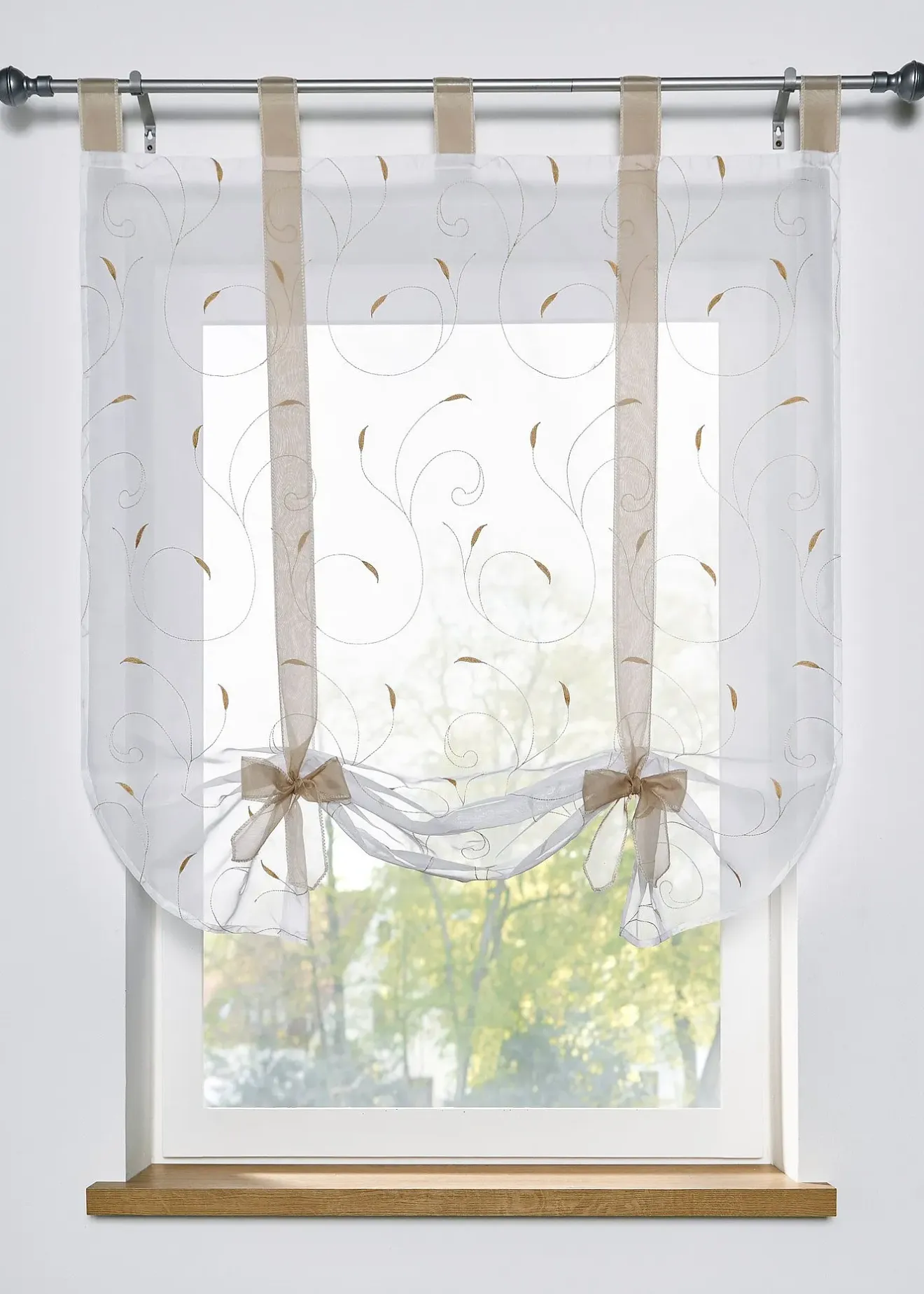 Vitrage à nouer romantique avec broderie filigrane
