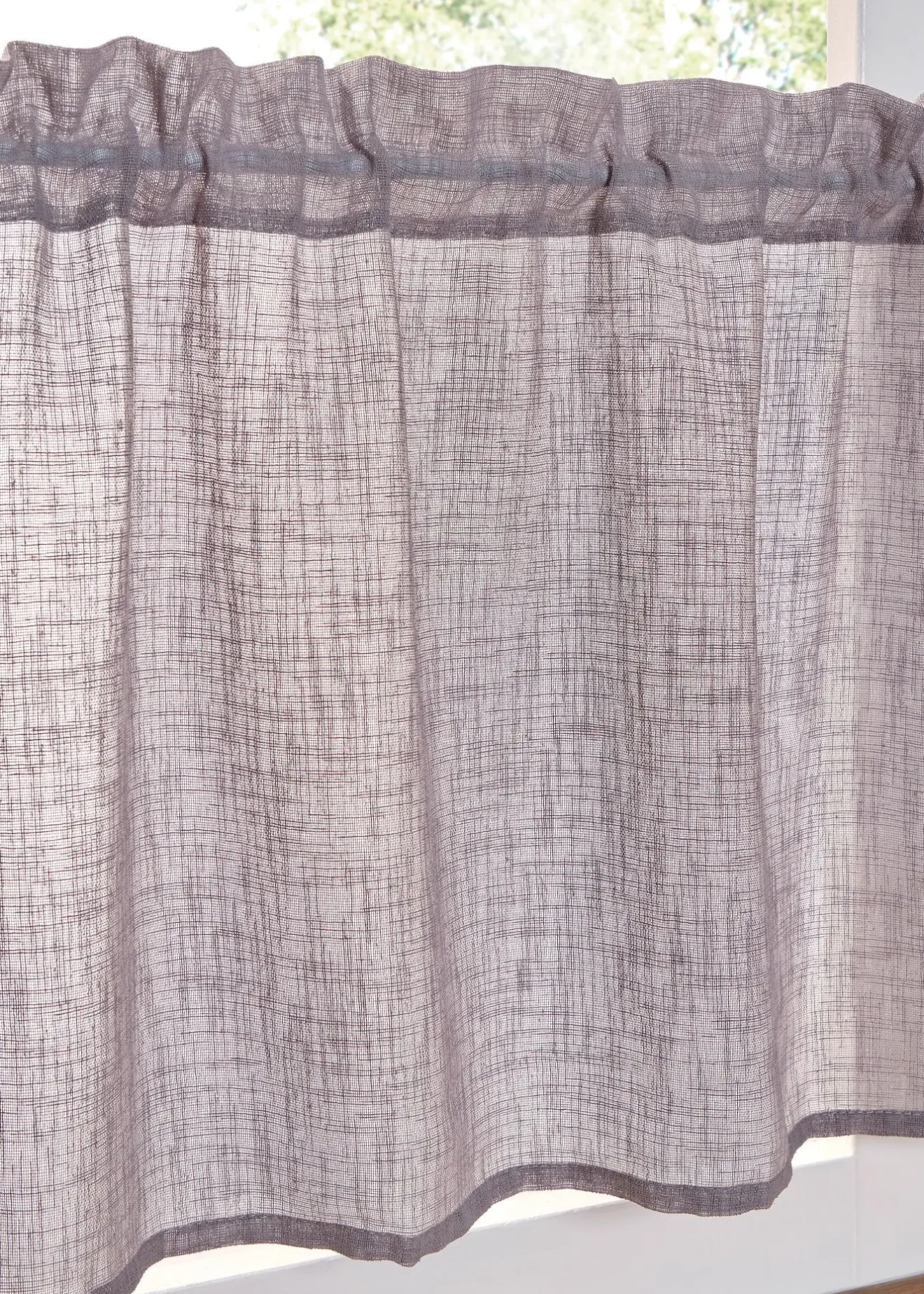 Brise-bise élégant effet lin. Coulisse passe-tringle pour diamètre max. 3 cm.