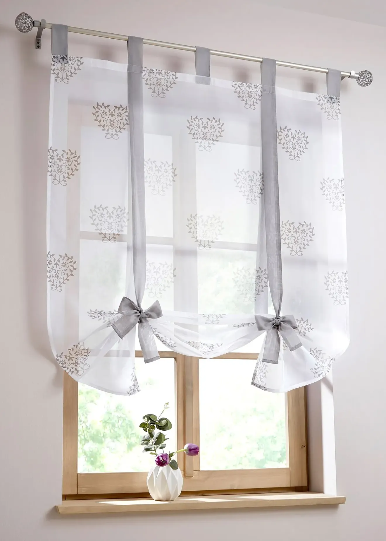 Voilage à nouer transparent à imprimé cœurs devant pour les fans du style cottage. Rubans colorés assortis pour le fixer à la hauteur voulue, nouer et c’est prêt !