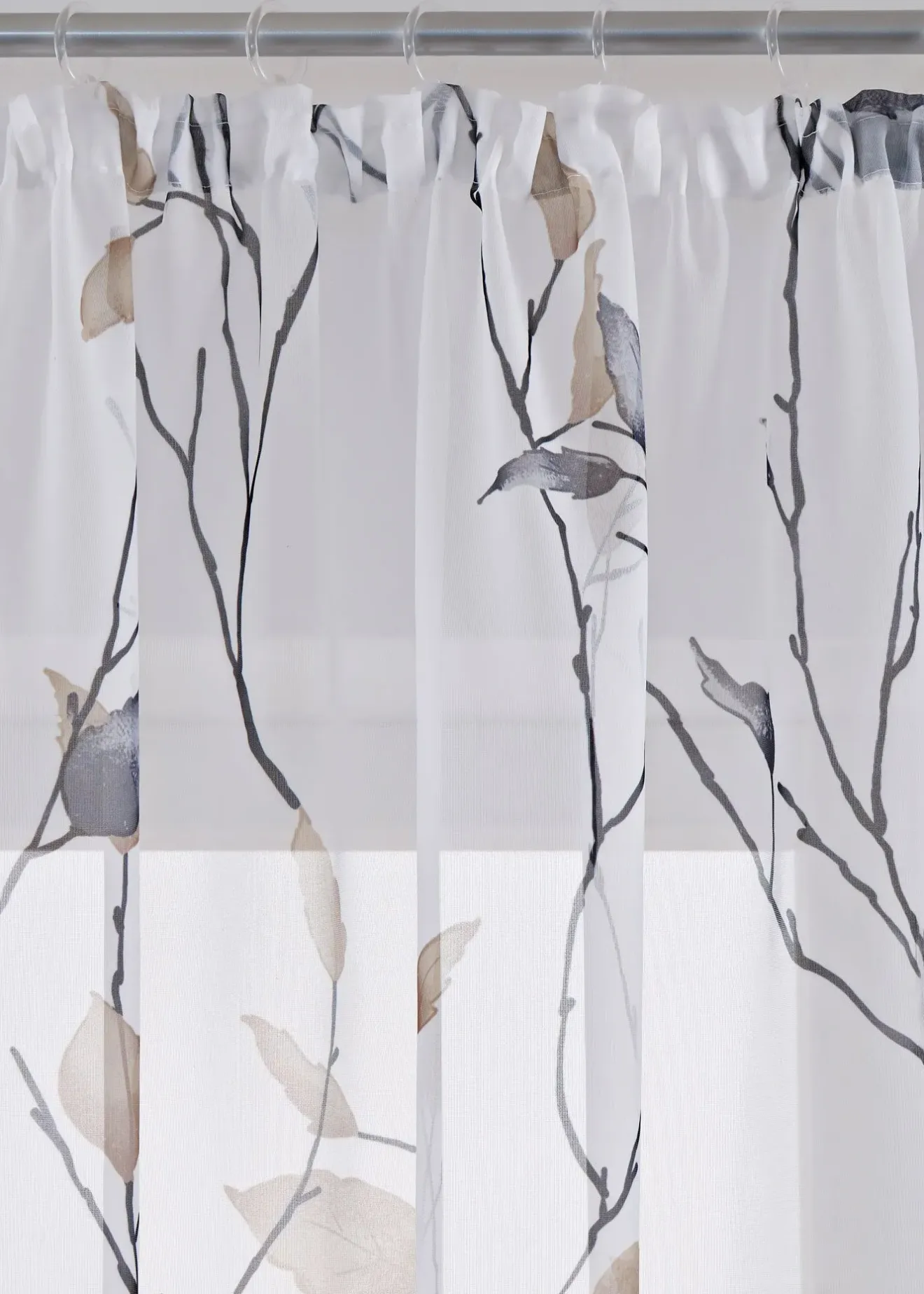 Imprimé floral façon aquarelle sur voile transparent. Les tonalités douces et la transparence de ce voilage apportent de la lumière et de la convivialité à votre pièce. Ce voilage est confectionné en tissu facile d’entretien.