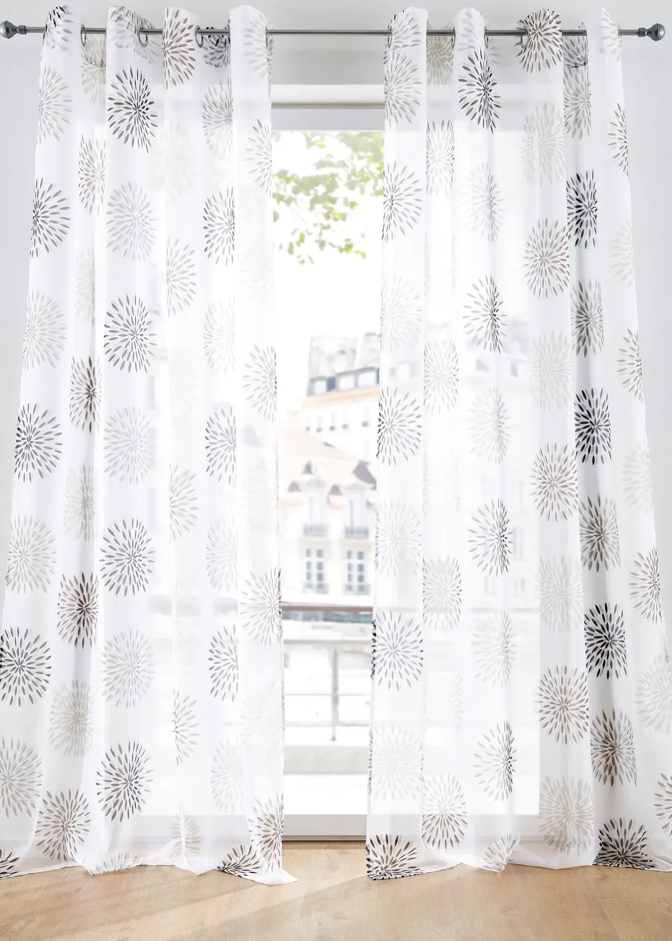 Voilage léger, tranparent et aérien avec un bel imprimé cercles moderne et accrocheur qui vient souligner une déco contemporaine.