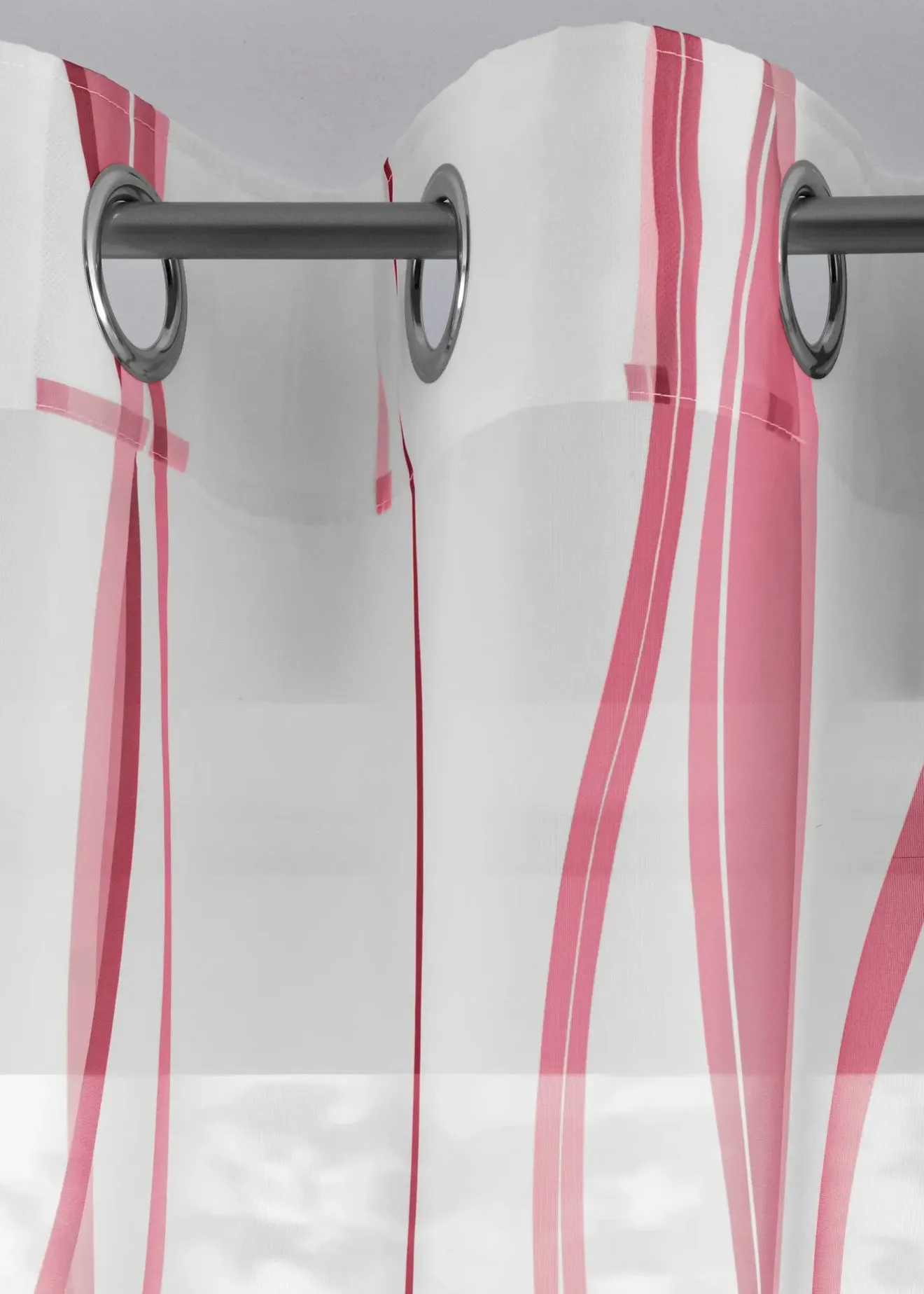 Voilage translucide et aérien à imprimé coloré sur fond blanc ou crème. Très facile à associer avec son motif intemporel qui convient à de nombreux styles d’intérieur.