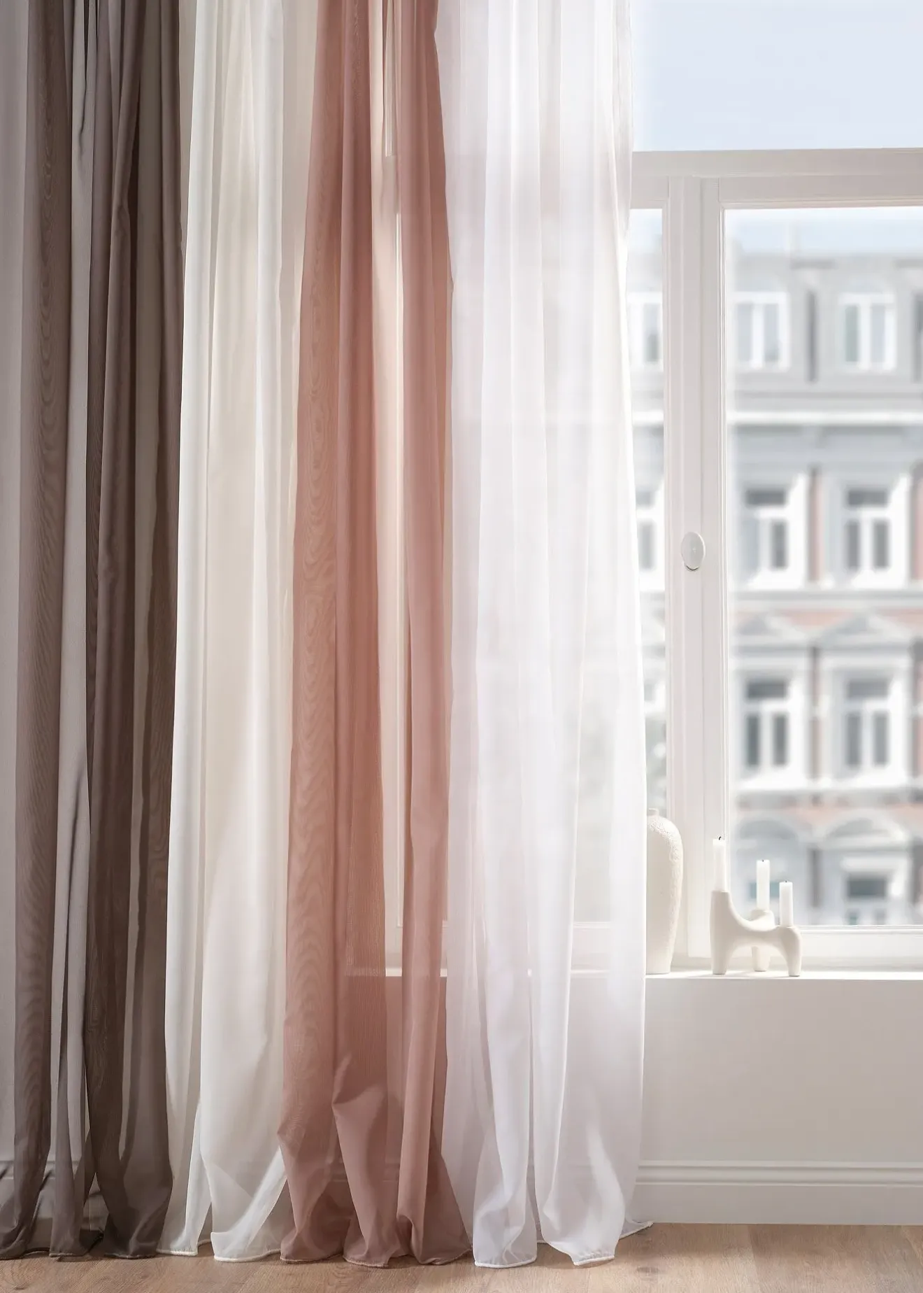 Voilage transparent et discret qui décore instantanément votre fenêtre. Son tissu à fils très fins se démarque par son tombé fluide et aérien. Facile d’entretien et lavable en machine. Peut être maintenu par un ruban pour un bel effet froncé.