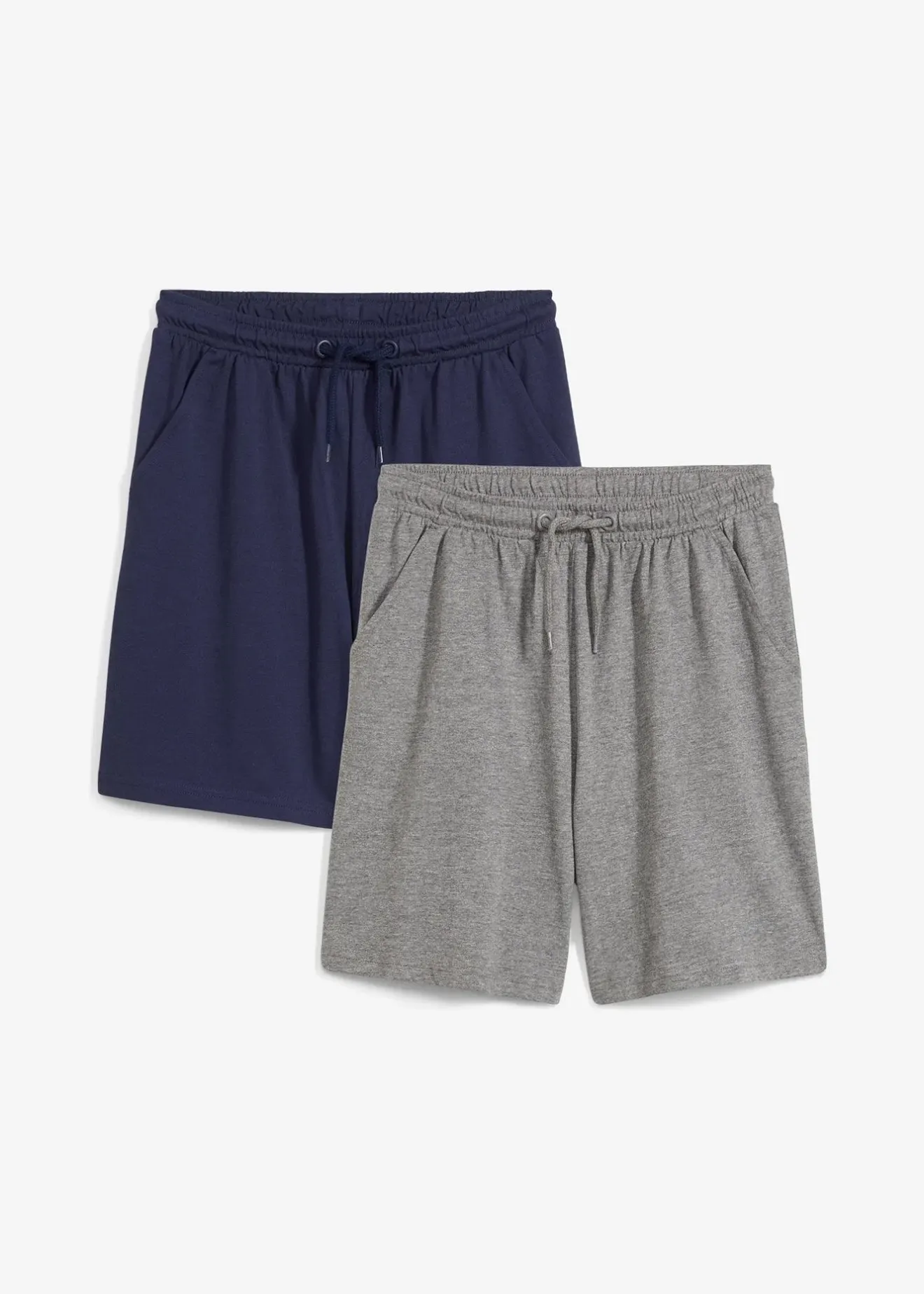 Master (bonprix): taille confortable, Taille élastiquée avec cordon, bleu foncé: taille confortable, Empiècement taille normal, gris clair chiné: taille confortable, Empiècement taille normal