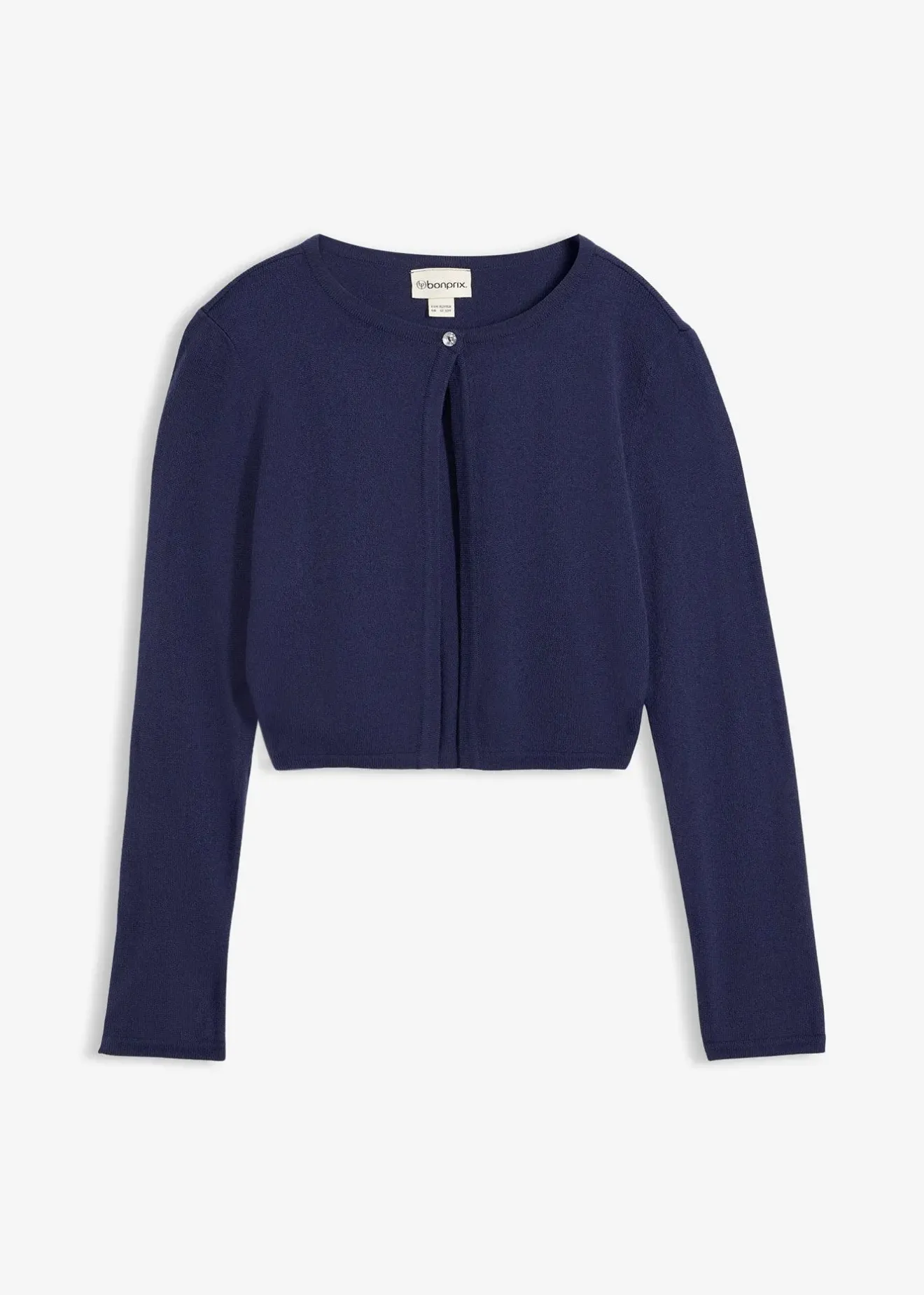 Ce ravissant boléro avec bouton scintillant s’associe facilement et permet de nombreuses associations.