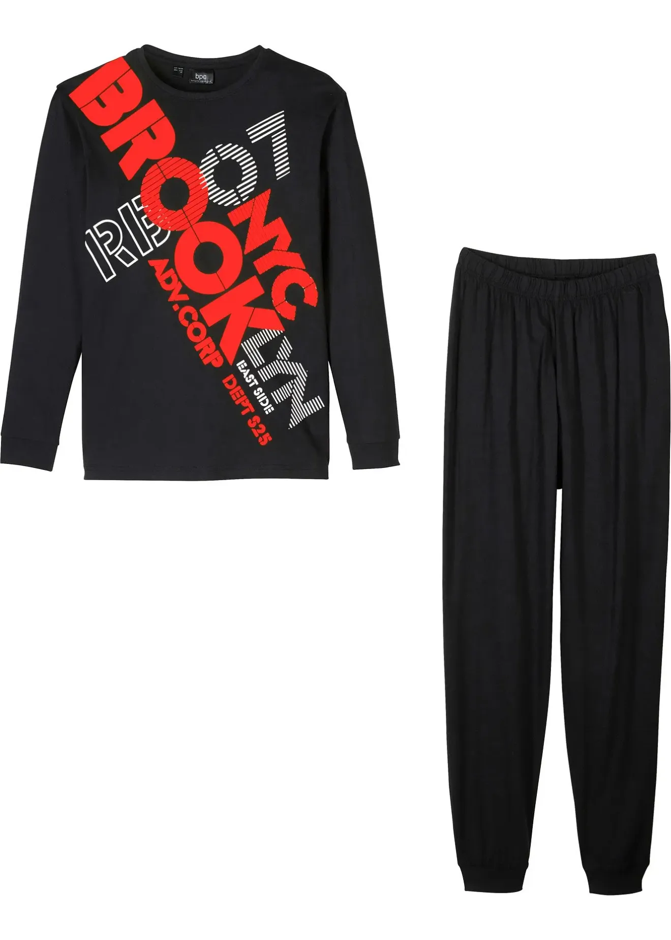 Pyjama 2 pièces composé d’un haut à manches longues et col rond et d’un pantalon à taille élastiquée. Grande inscription cool Brooklyn sur le devant.