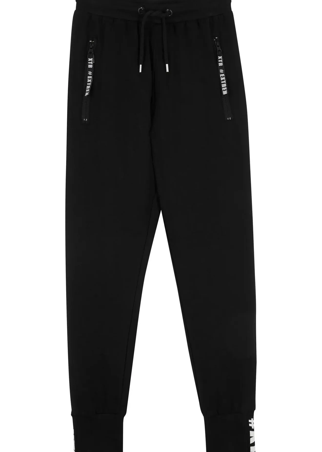 Pantalon en molleton tendance avec des détails imprimés en bas de jambes et sur les poches zippées. Taille élastiquée avec un cordon de serrage et matière coton douce pour un grand confort. Parfait pour le sport et les activités de loisirs ou pour rester sur le canapé.