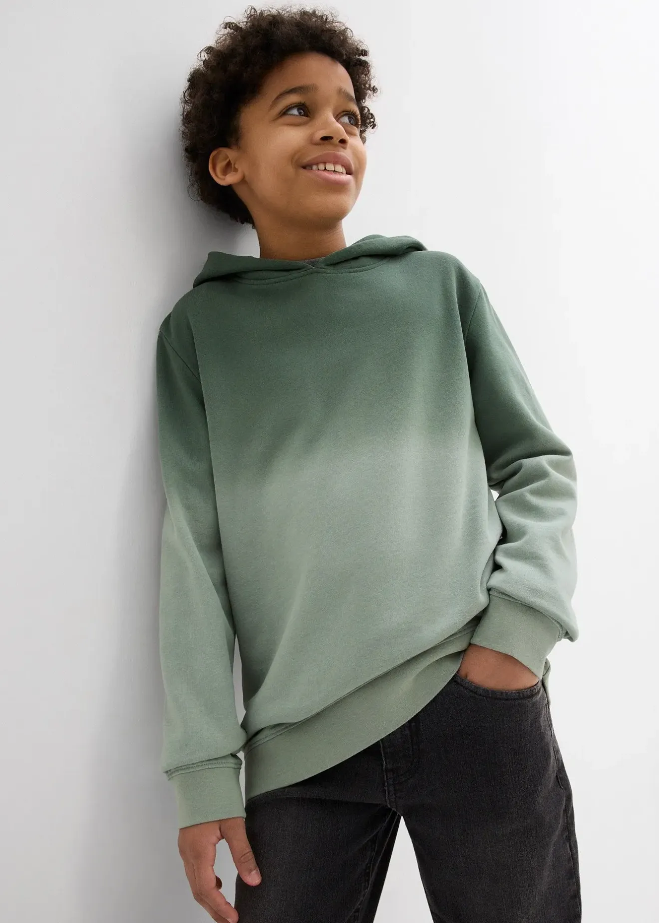 Joli sweat à capuche effet ombré, finitions côtelées. Chaque pièce est unique.