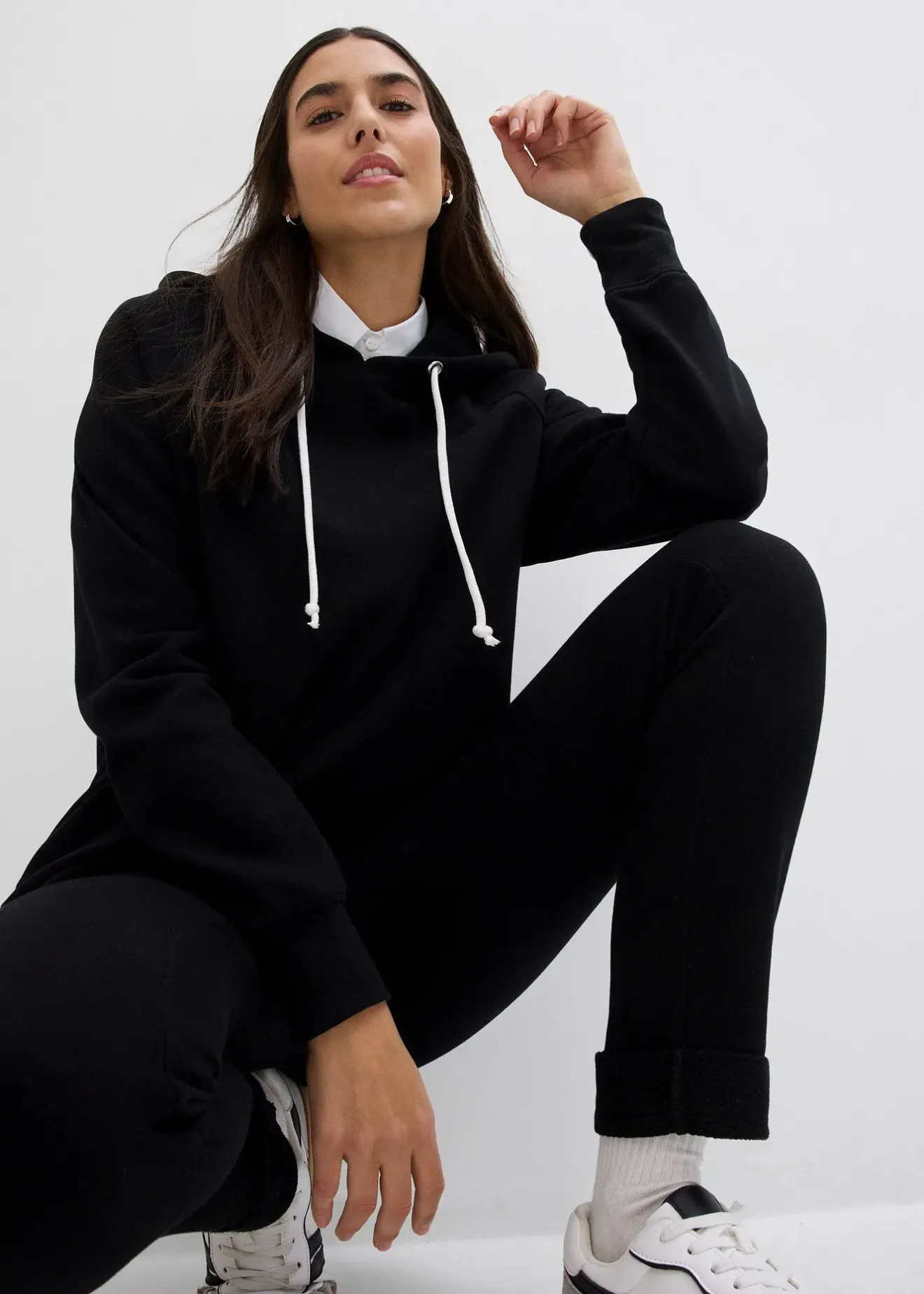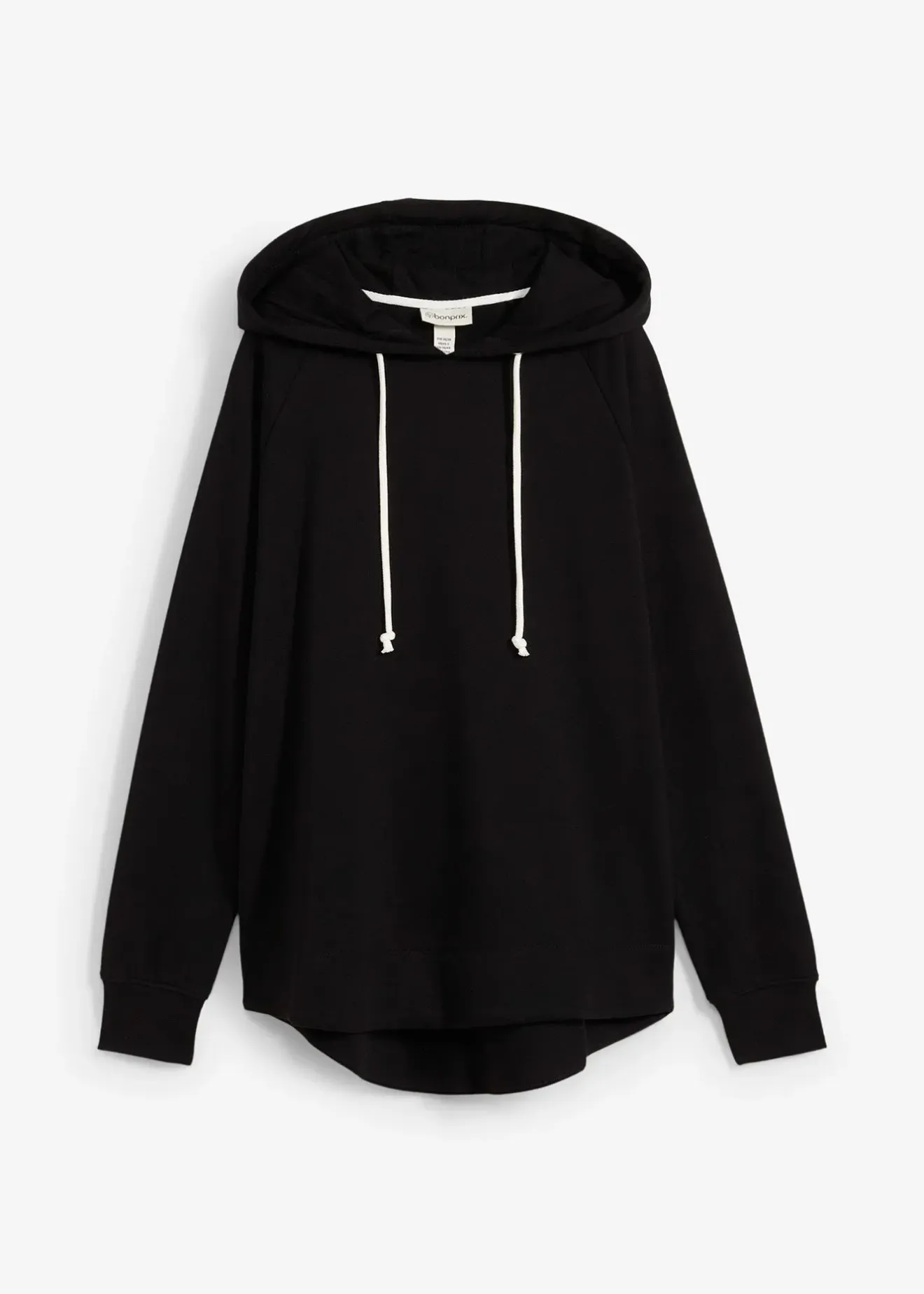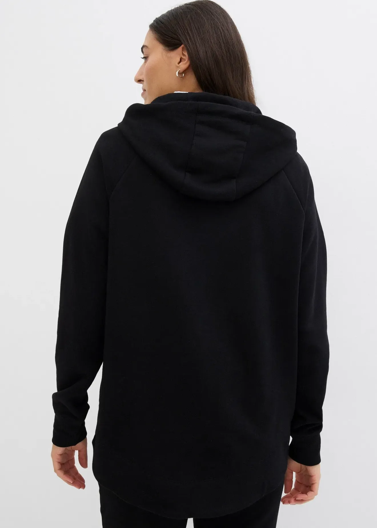 Sweat-shirt à capuche confortable, long dans le dos. Long. env. 76 cm, lavage machine.