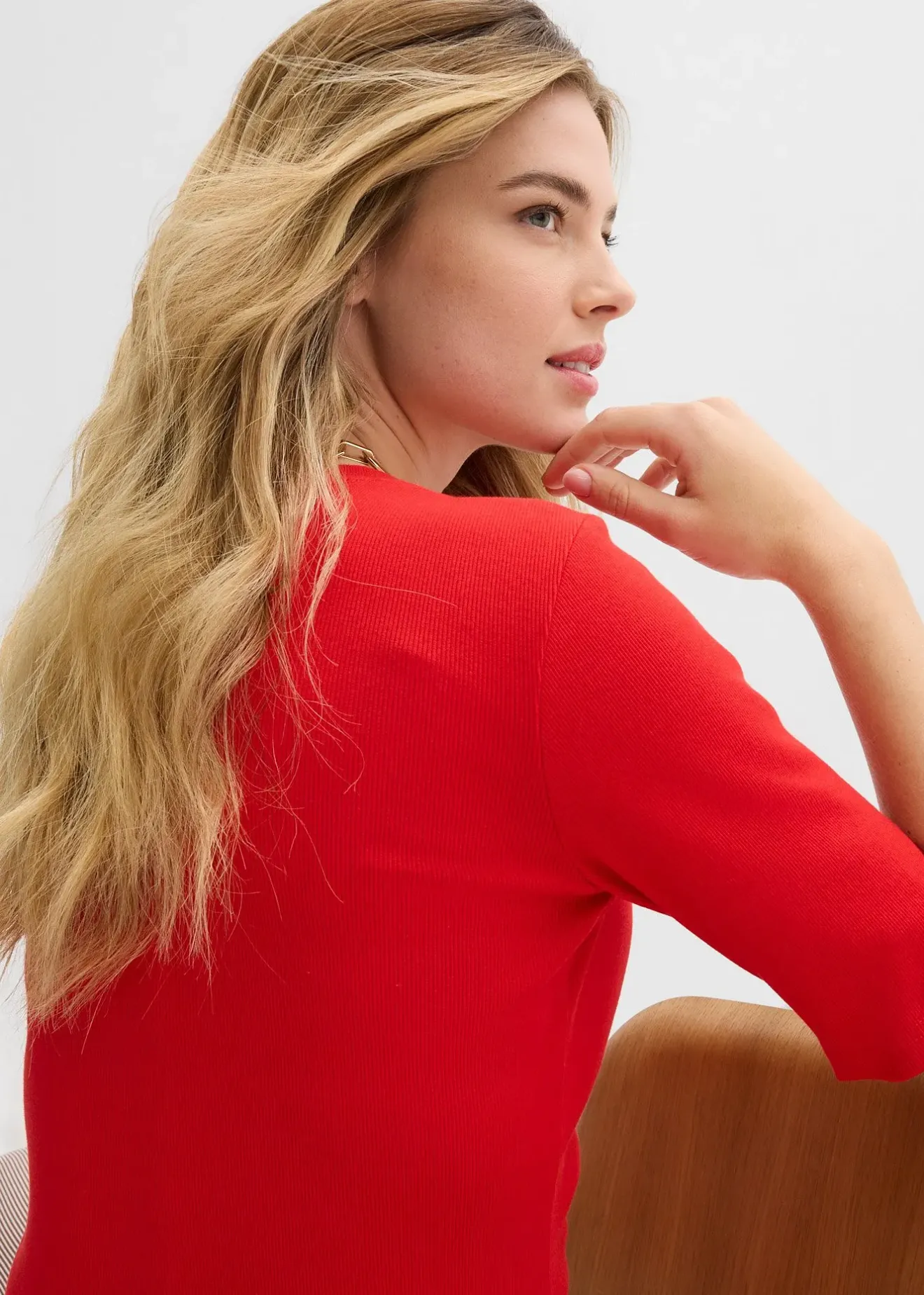 T-shirt col V côtelé, facile à combiner