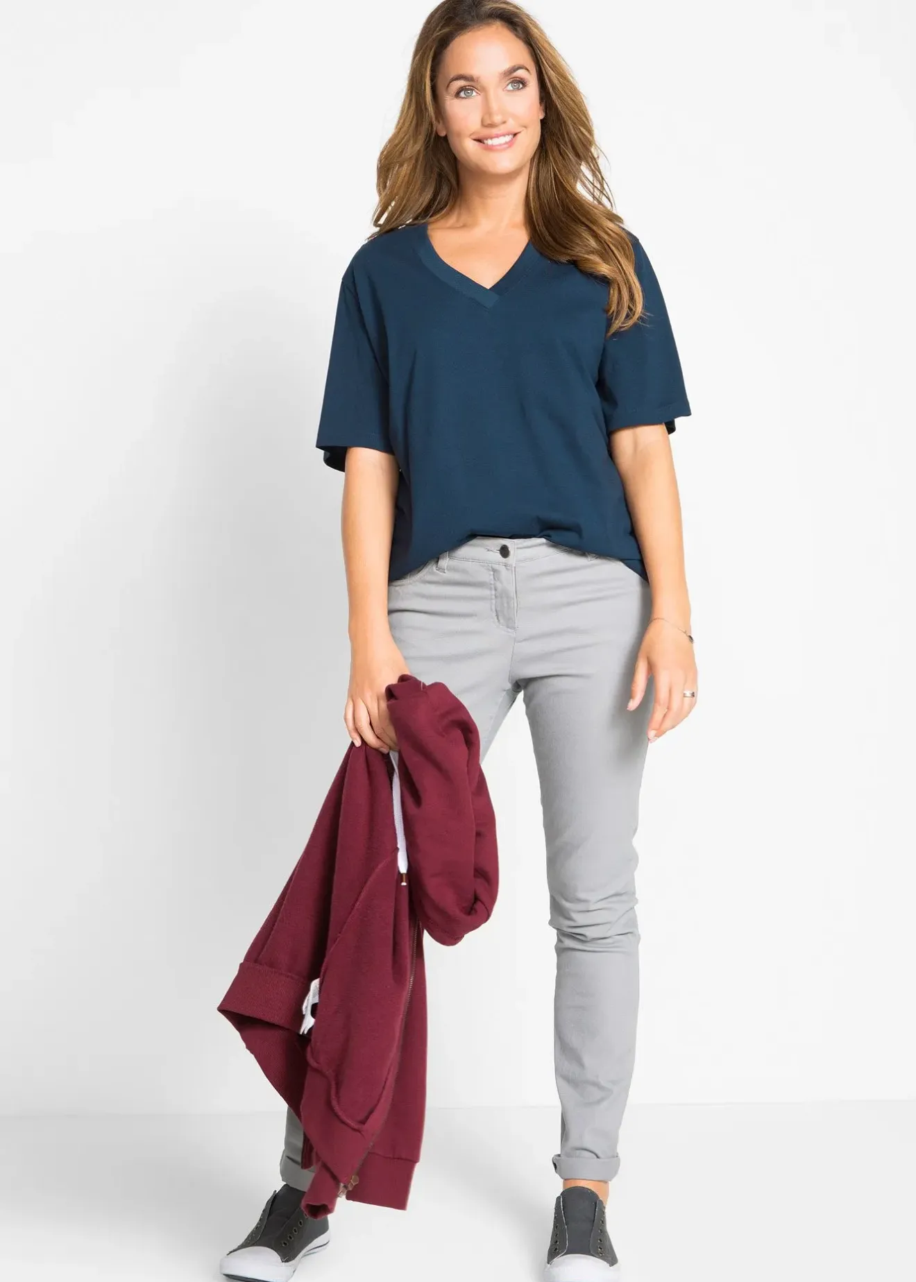 Lot de 5 T-shirts à col V de bpc. Palette de couleurs variées pour de nombreuses combinaisons avec un jean, un short, un chino ou une jupe. Matière douce, longueur confortable, coupe décontractée et agréable.