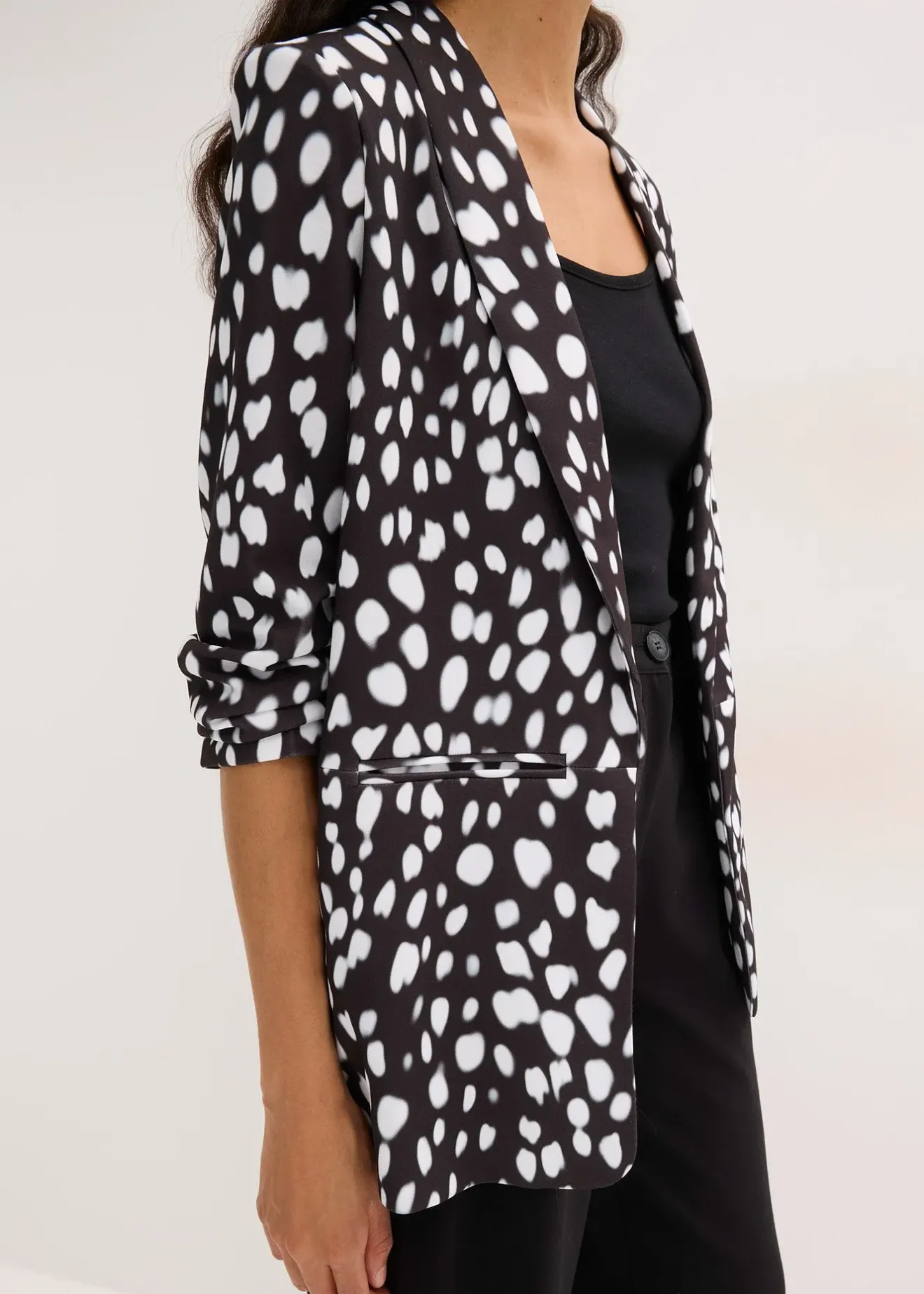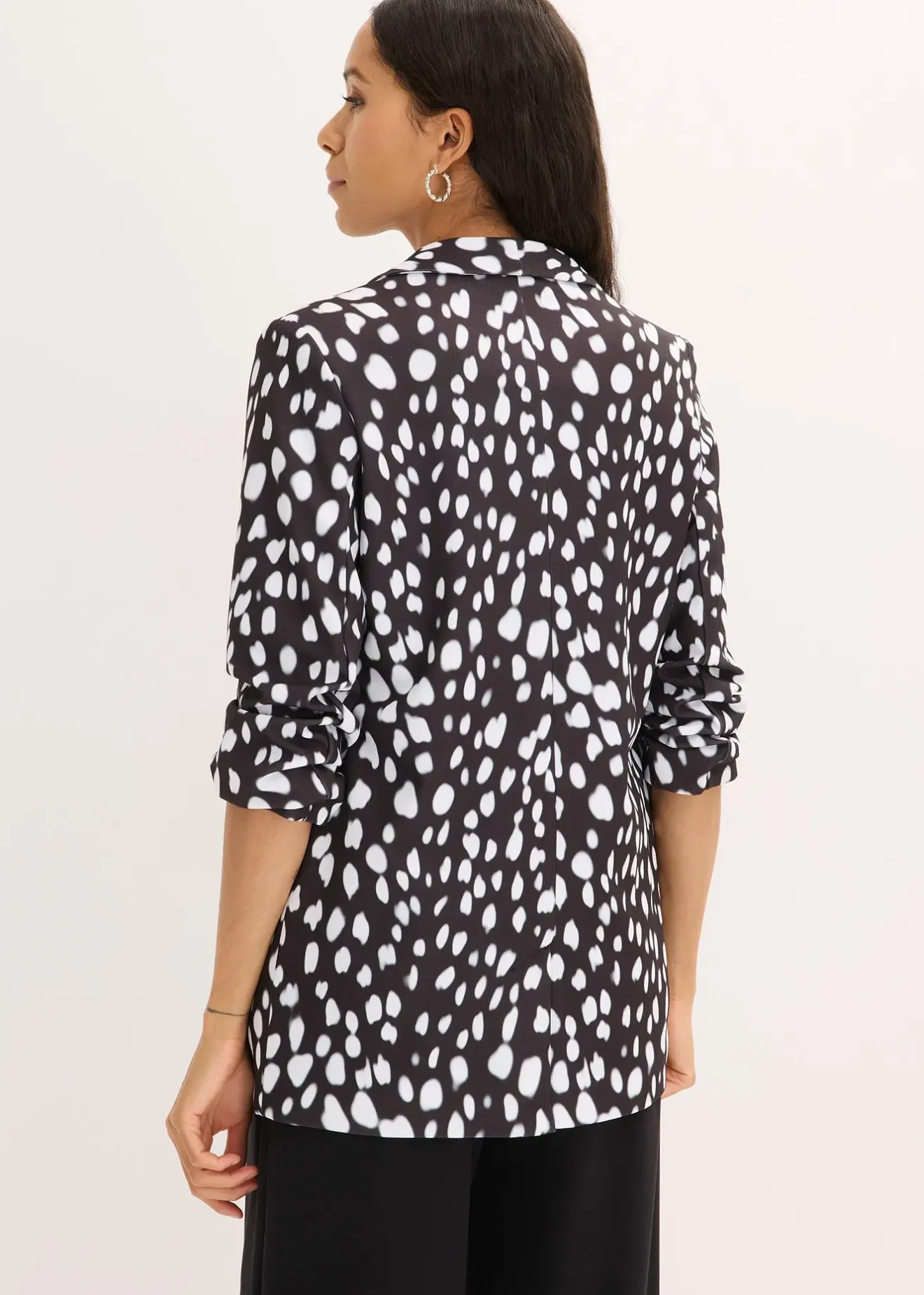 Blazer long à imprimé graphique et manches 3/4 froncées