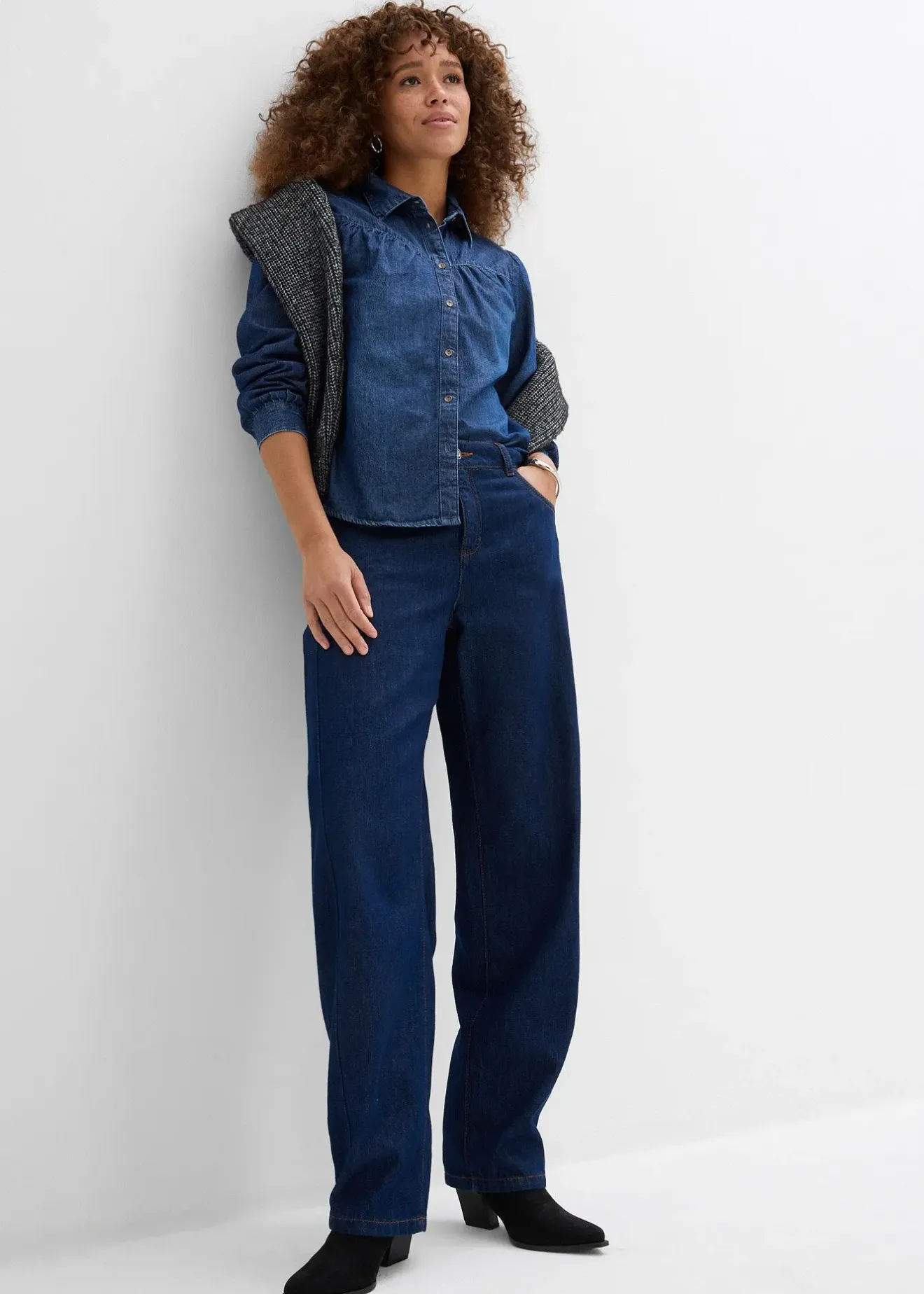 Chemisier en jean à manches bouffantes