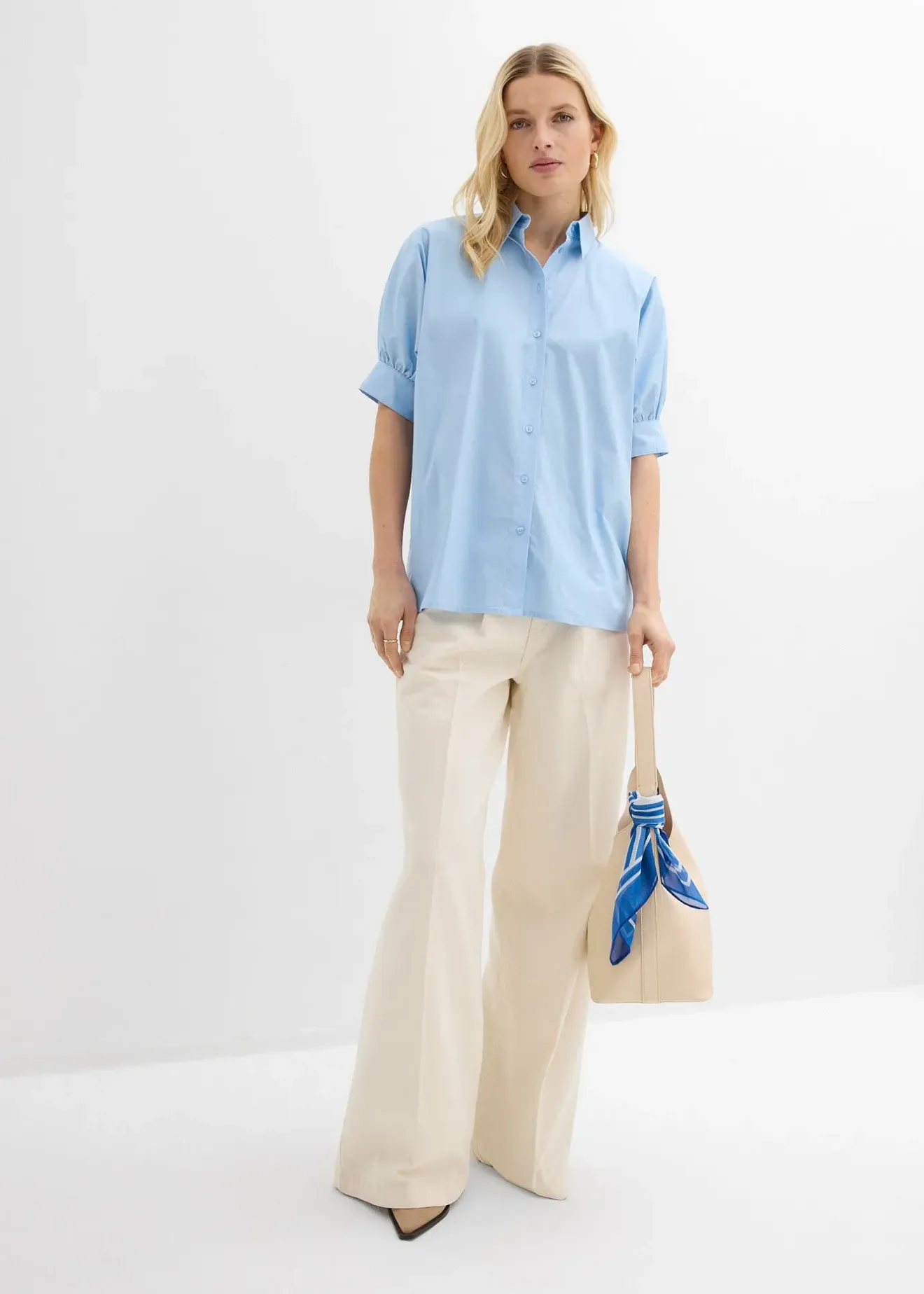 Chemisier oversize à manches bouffantes, boutonné devant