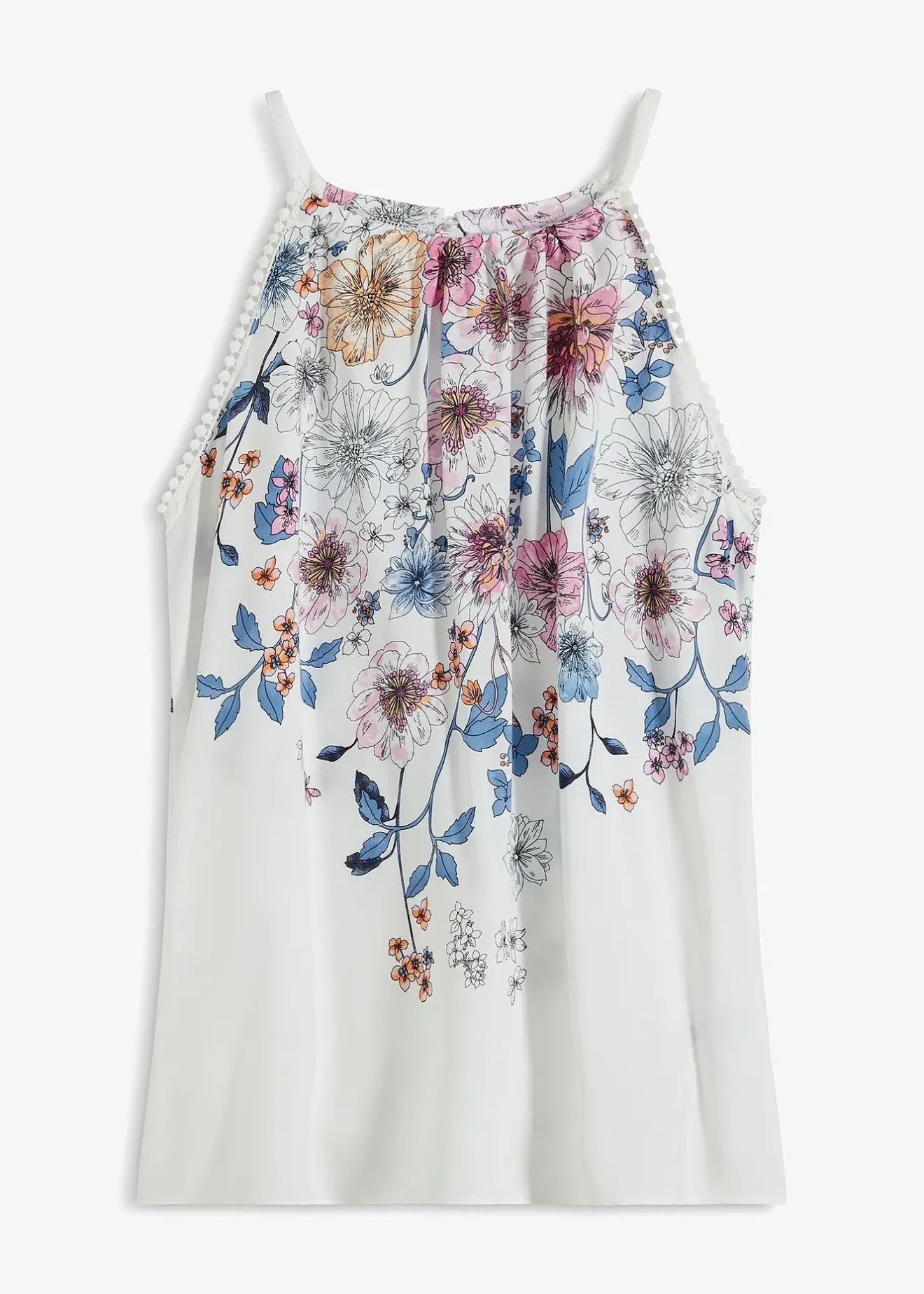 Top imprimé de la marque BODYFLIRT avec un imprimé floral et une base romantique en dentelle.