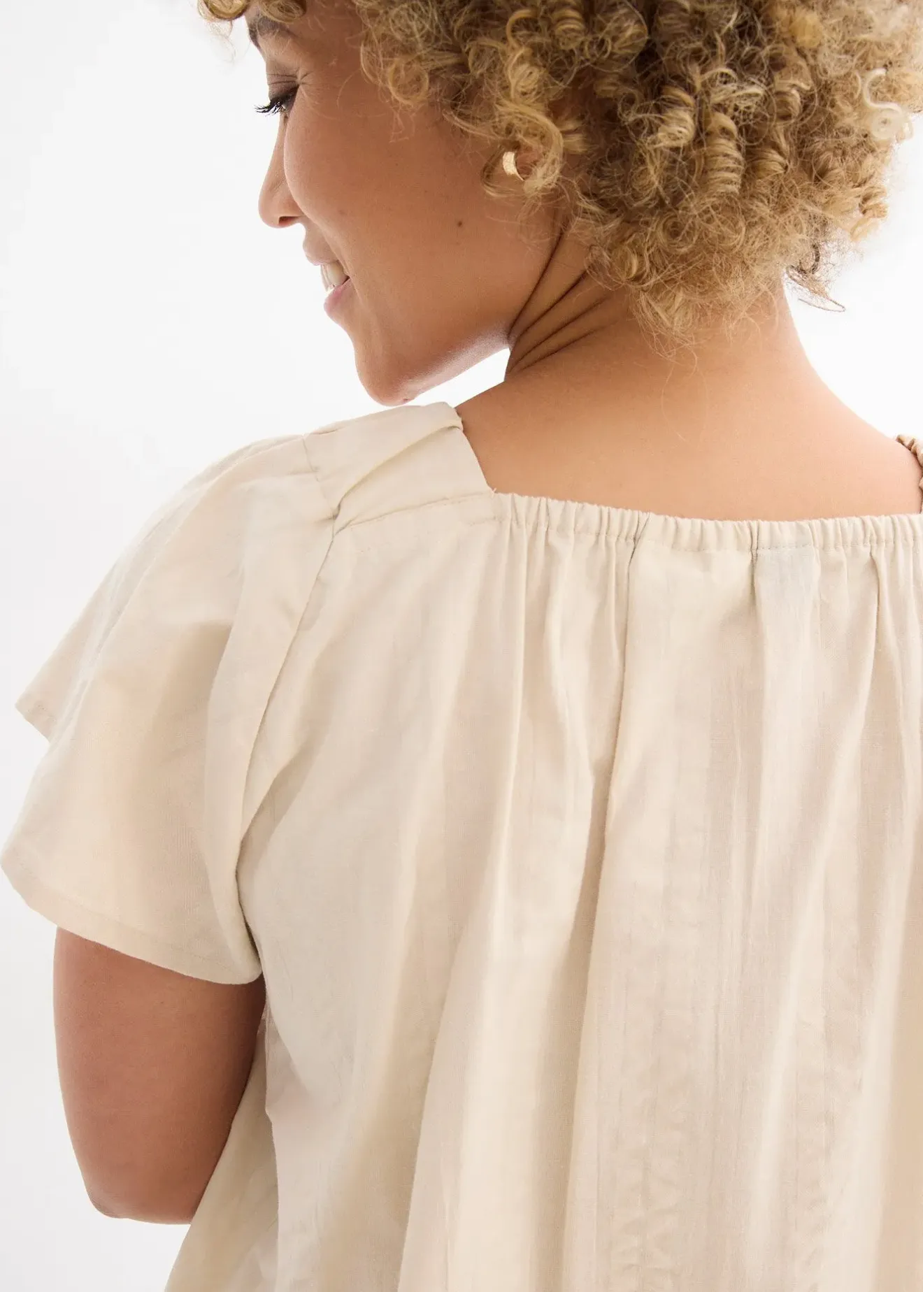 Blouse en coton léger et texturé avec des manches papillon et des bretelles élastiques