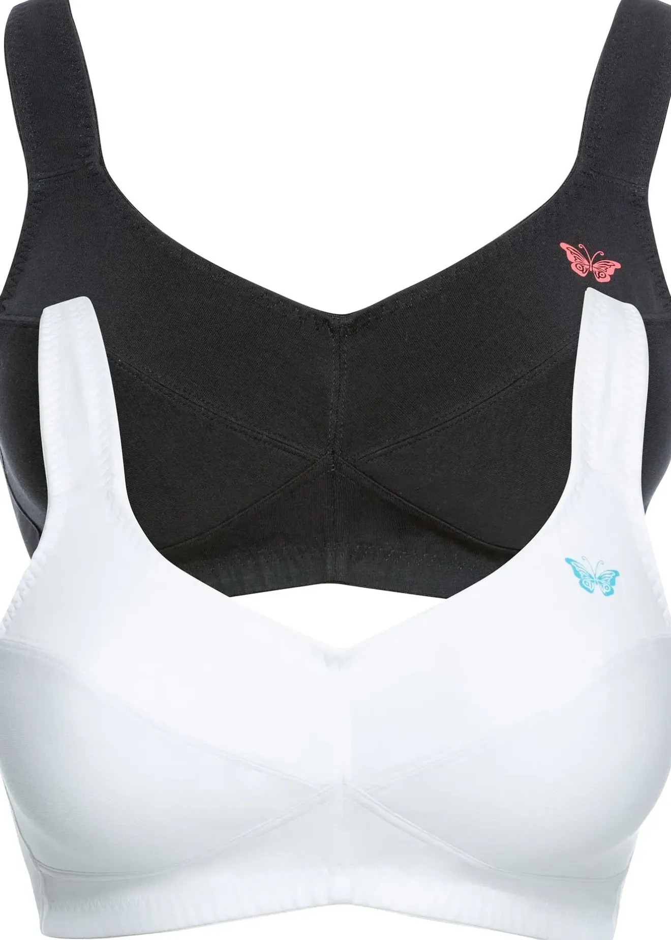 Ce soutien-gorge en coton séduit par son grand confort. Confectionné sans armatures, il est muni de larges bretelles rembourrées. Petit imprimé papillon décoratif. Proposé en lot pratique de 2, il est parfait pour le quotidien.