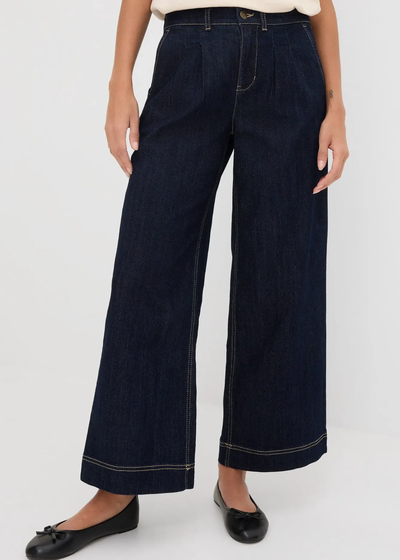 Jean large élégant à pinces et taille élastiquée