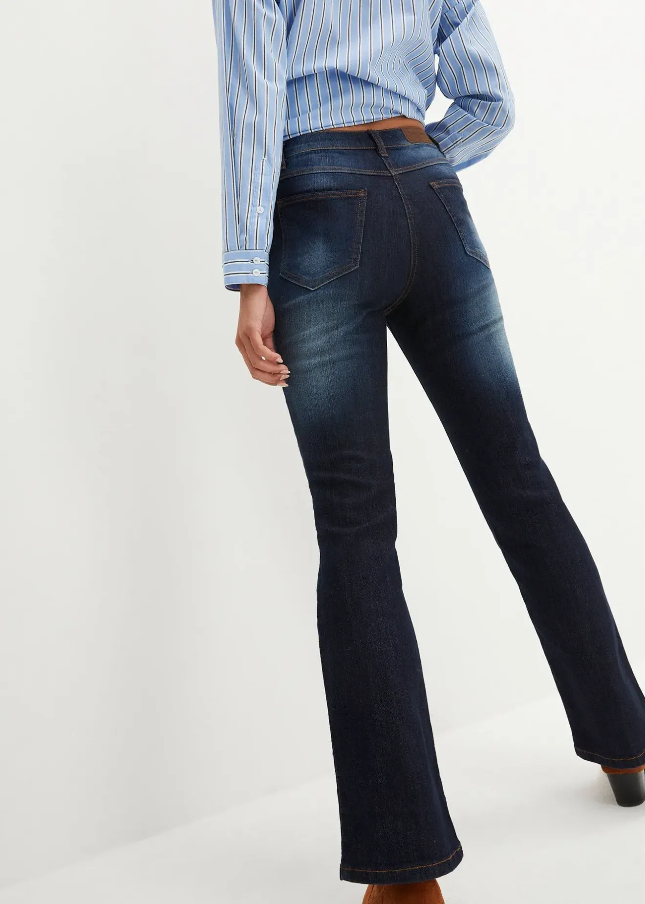 Jean extensible, Bootcut, style 5 poches, taille de hauteur confortable, cuisses normales, jambes évasées, différentes longueurs d’entrejambe, lavage machine.