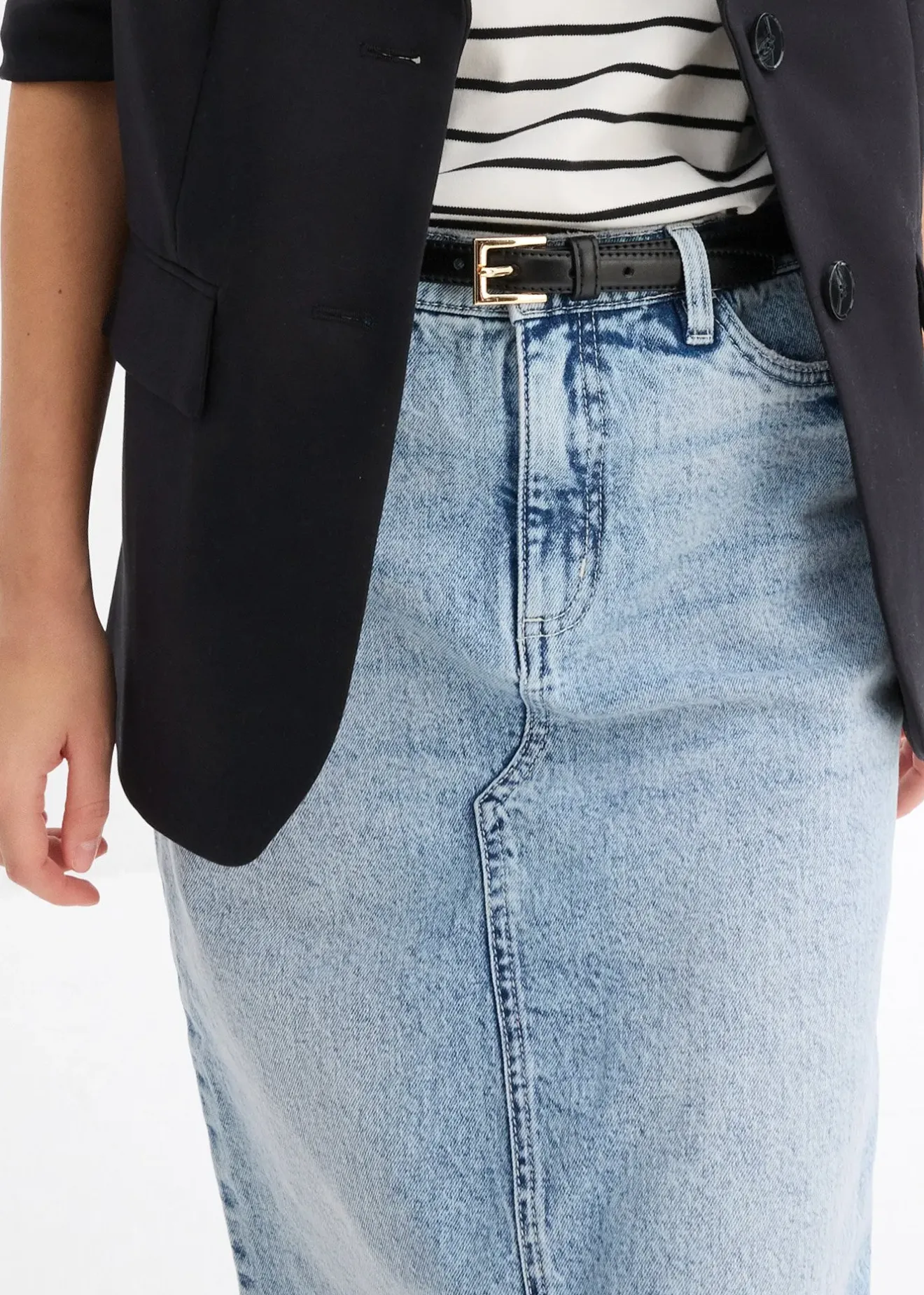 Jean en jean 5 poches dans une toile épaisse et rigide qui s’assouplit au fil des ports. Long. env. 78 cm, lavage machine.