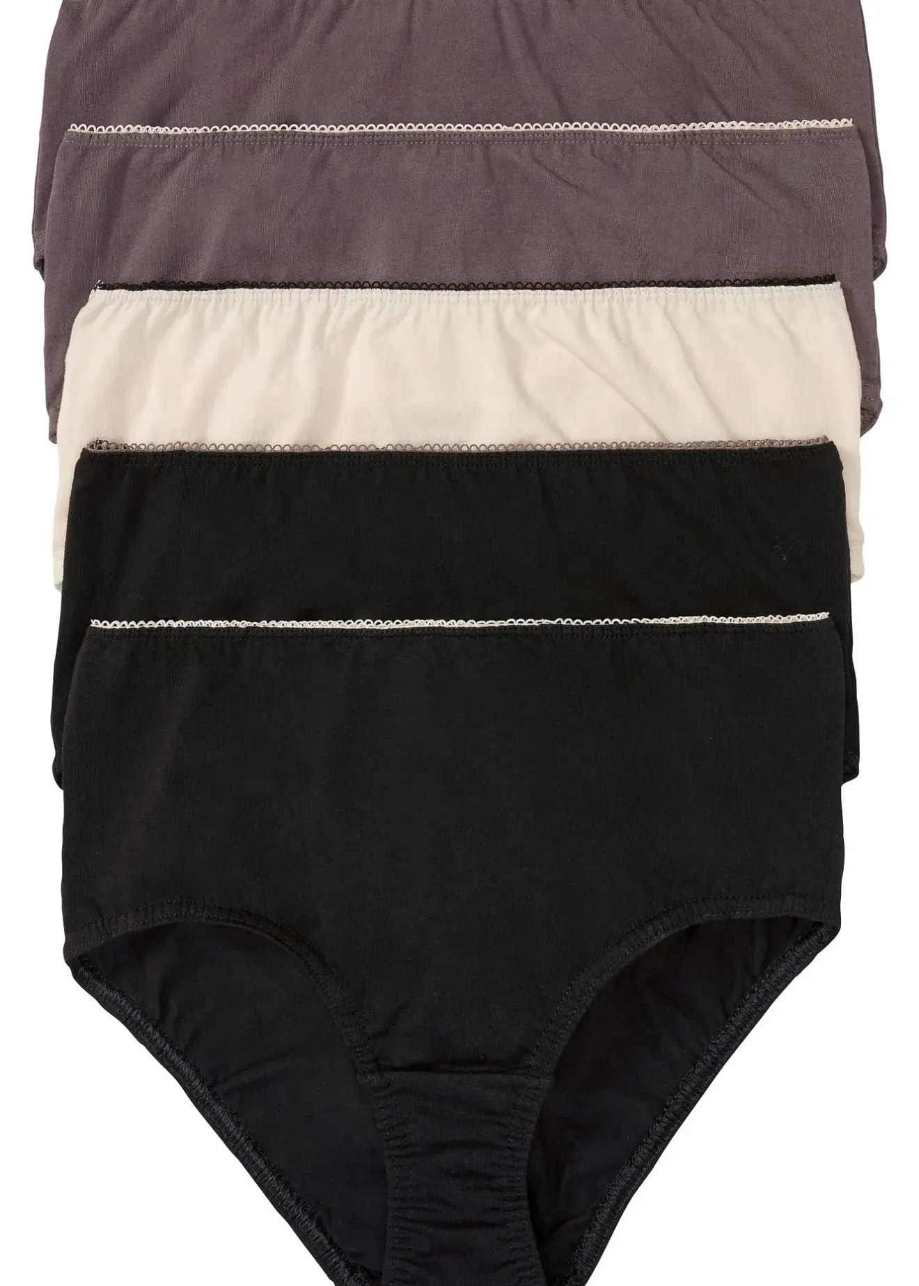 Lot de 5 slips maxi confortables de la marque bpc avec élastiques de coloris contrastant. Parfaits pour le quotidien. En coton doux et extensible pour une grande liberté de mouvement. Taille haute et gousset en coton.