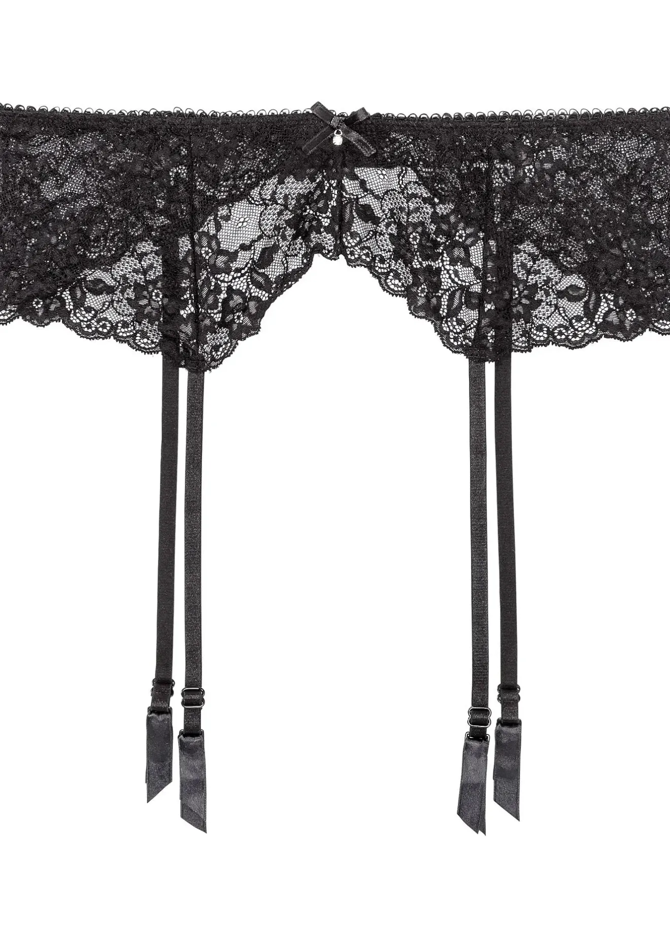 Le porte-jarretelles sublime vos atouts et vous donne une allure séduisante. Dentelle transparente sexy et bas auto-fixants. Un petit brillant complète l’ensemble à merveille. Combiné avec un redresse-poitrine ou un string ouvert, vous obtenez une parfaite tenue de charme.