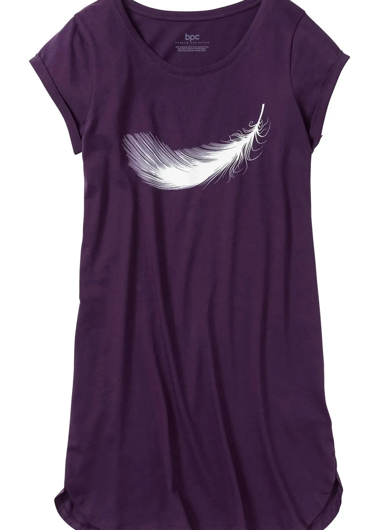 Chemise de nuit à manches courtes, coupe ample et matière agréable pour la peau. Encolure ronde dégagée. Forme droite et base arrondie. Ravissant imprimé plume sur le devant.