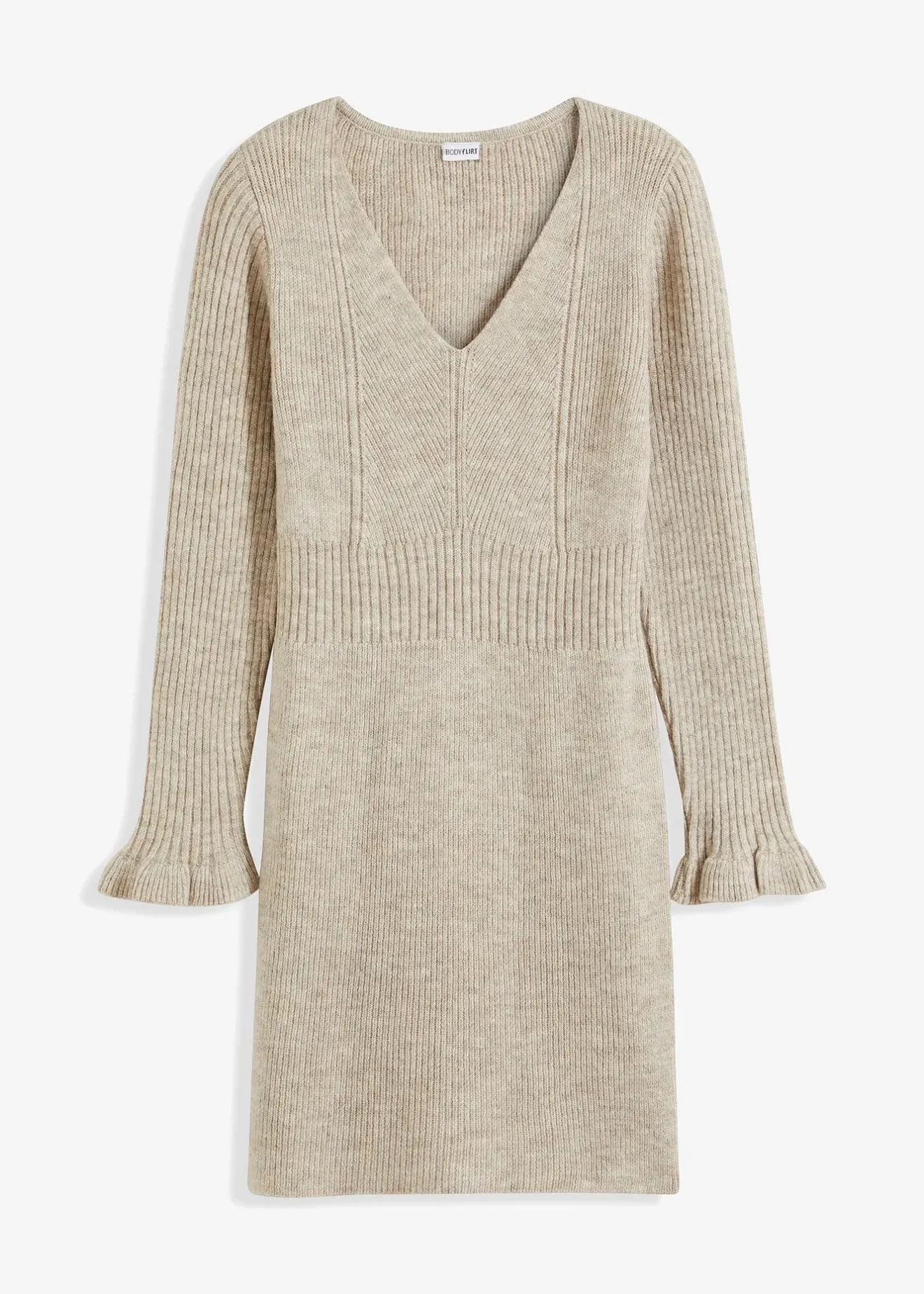 Robe pull féminine avec poignets volantés