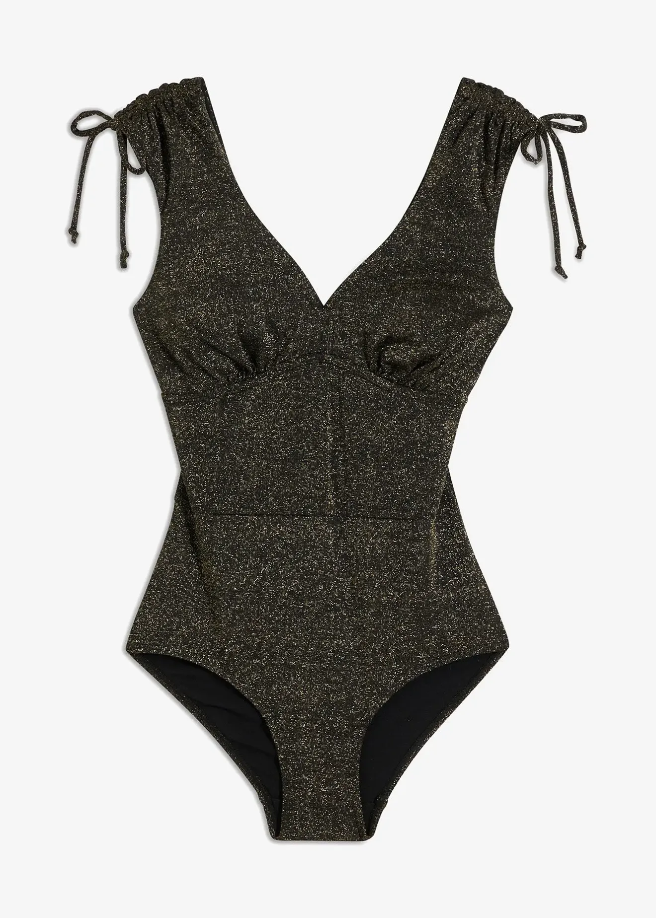 Maillot 1 pièce sculptant et brillant à larges bretelles