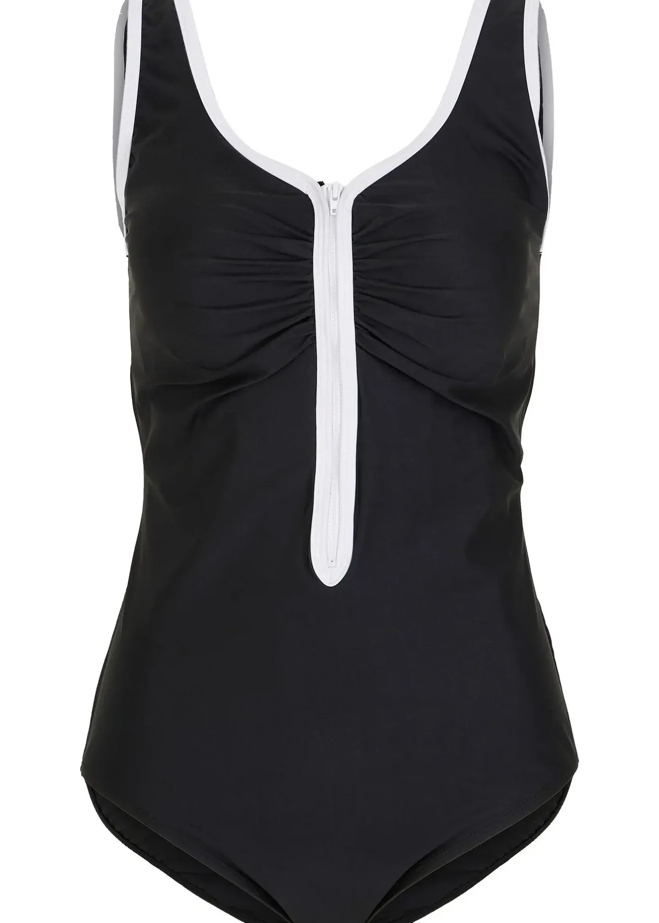Dans la sélection de Maite Kelly : ce maillot 1 pièce de bpc est la tenue de plage parfaite pour vos prochaines vacances. Il est confectionné dans une matière gainante amincissante qui sublime la silhouette. Ce modèle est doté d’une doublure poitrine et d’une bande élastique sous poitrine. Des coques souples intégrées mettent en valeur le décolleté. Ce maillot 1 pièce est doté d’un zip sur le devant et d’une doublure modelante, il est souligné d’un passepoil de coloris contrastant sur les bretelles et le décolleté.