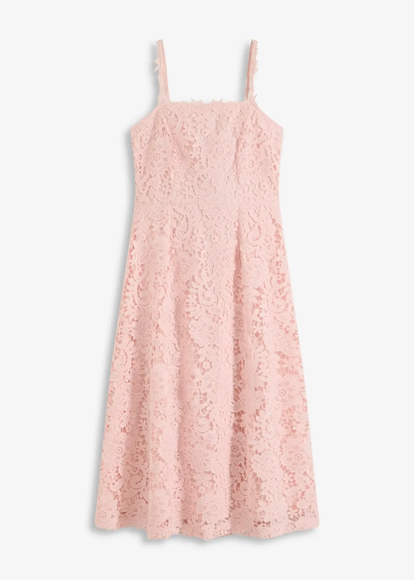 Robe midi romantique en dentelle avec bretelles ornées de dentelle florale