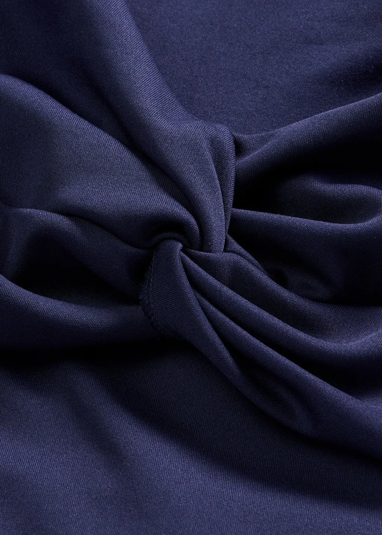 Robe féminine et tendance en matière néoprène solide avec col Bardot et détail nœud