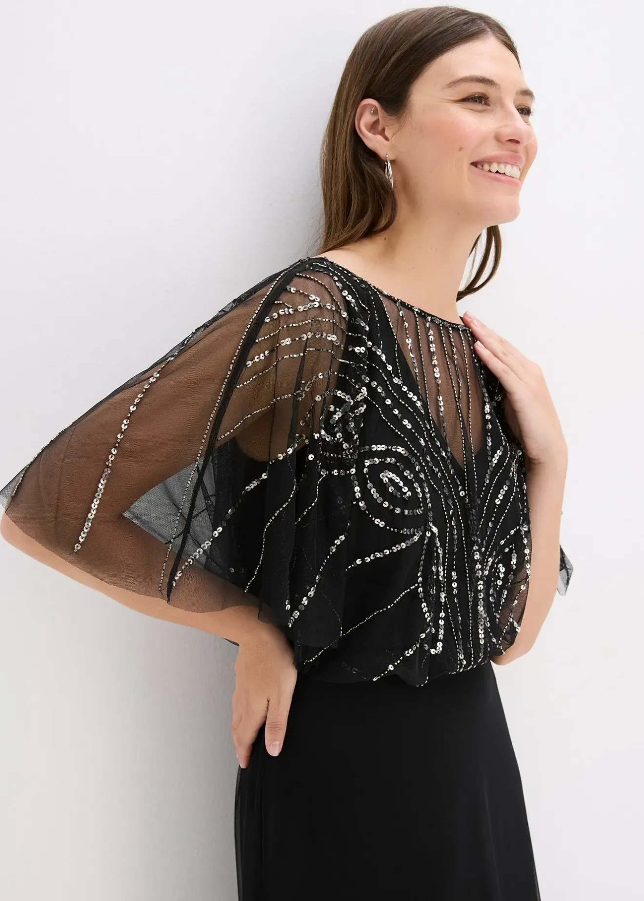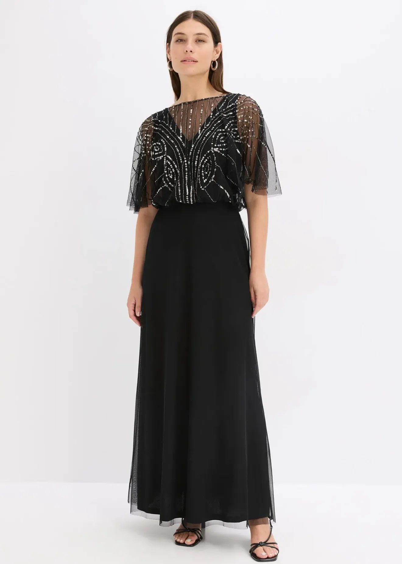 Robe longue de soirée classique et féminine en tulle fin avec sequins brodés