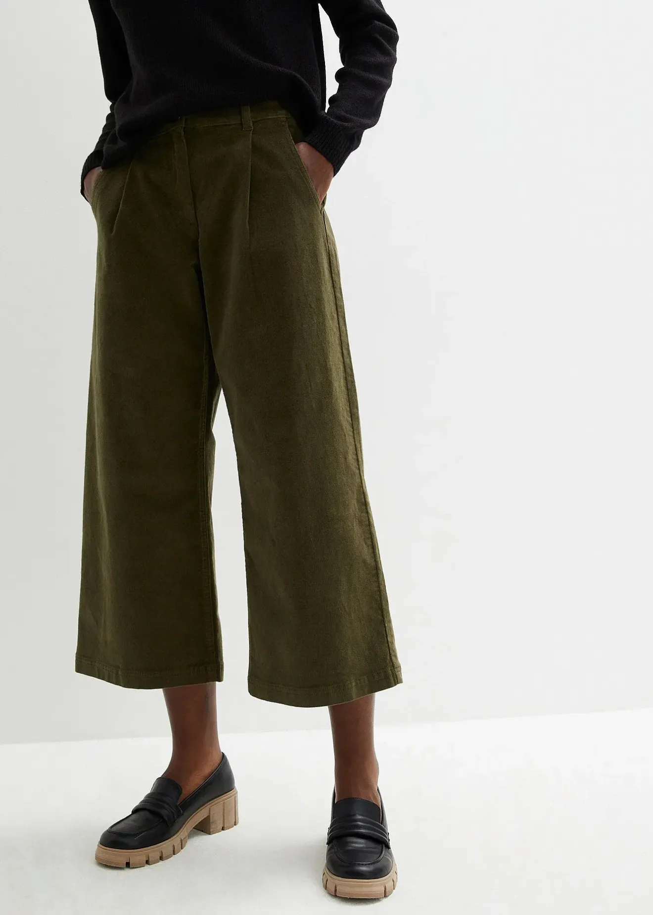Jupe-culotte en velours côtelé stretch avec taille haute confortable